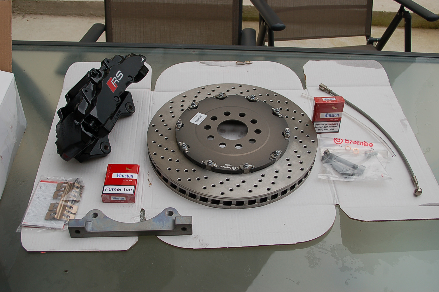 - 8 pots calipers (B7) + 380x34 rotors + brackets + pagid yellow = 2730 euros