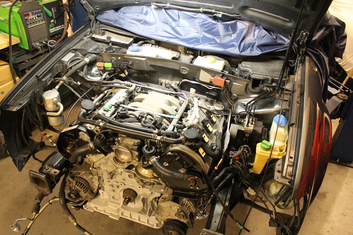 Engine is in! Already turned the engine to get oil-pressure and did a compression test. The compression was 13bar. Audi says it need to be 7-13 so it is very good