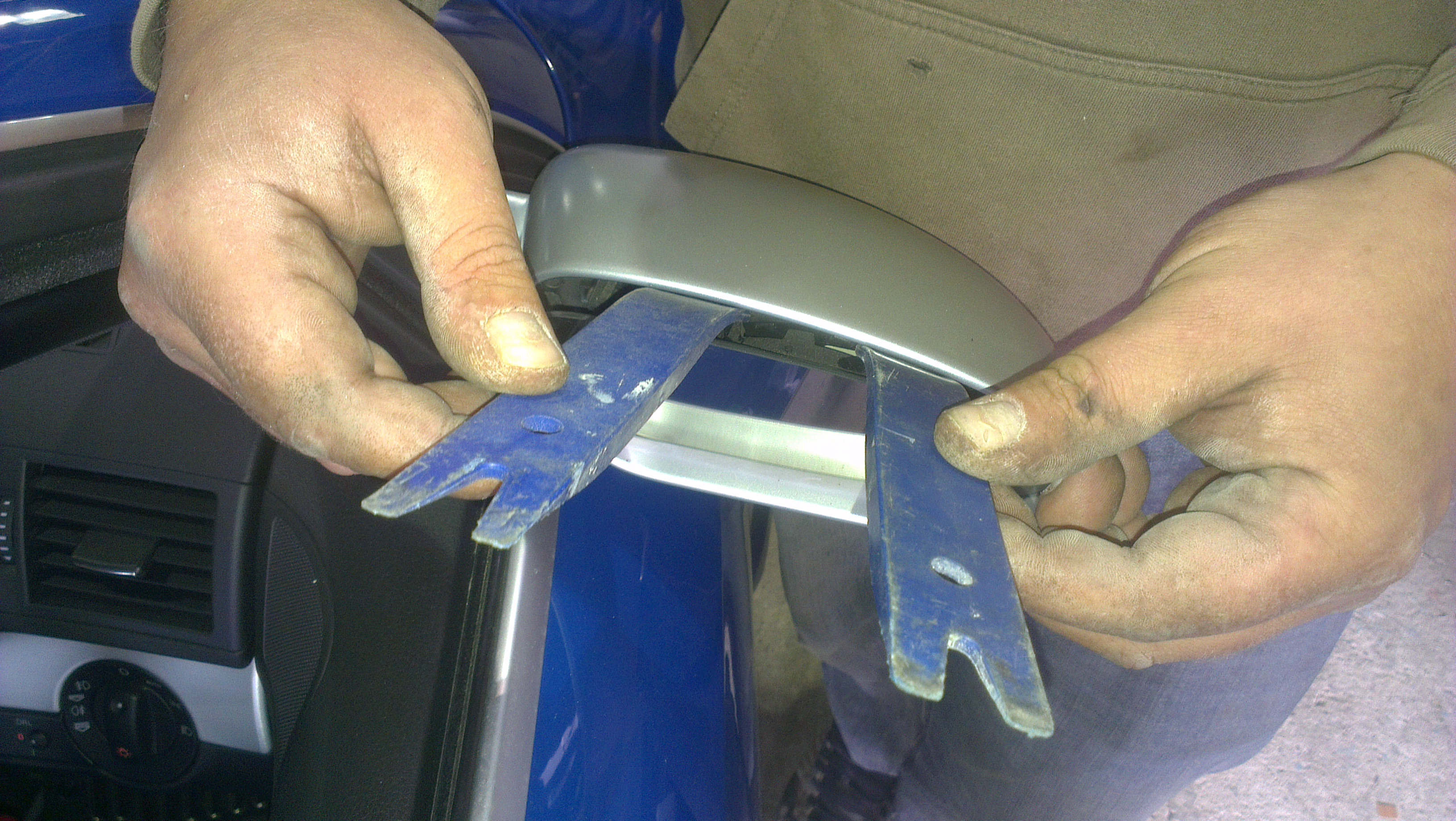 i use two plastic trim tools for this but you can use your finger tips if they are thin enough.