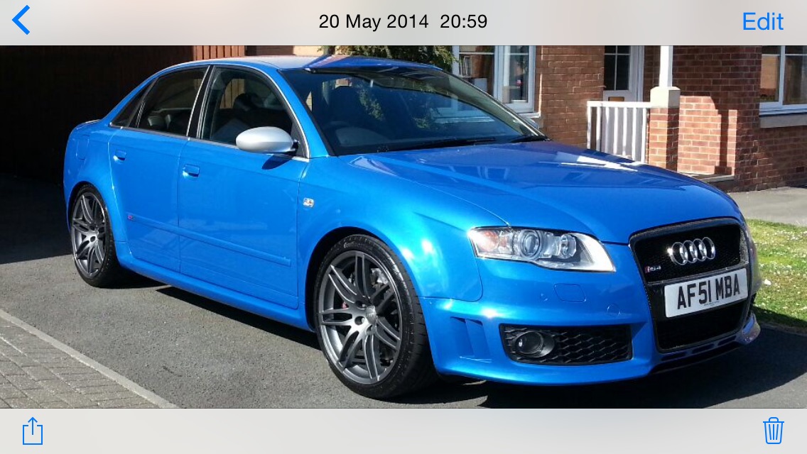 Sepang Blue B8 RS4, MY14, All option packs, B&O, Adv Key, Adapt Cruise, Pan Roof, Akrapovic Titanium Exhaust, + more.