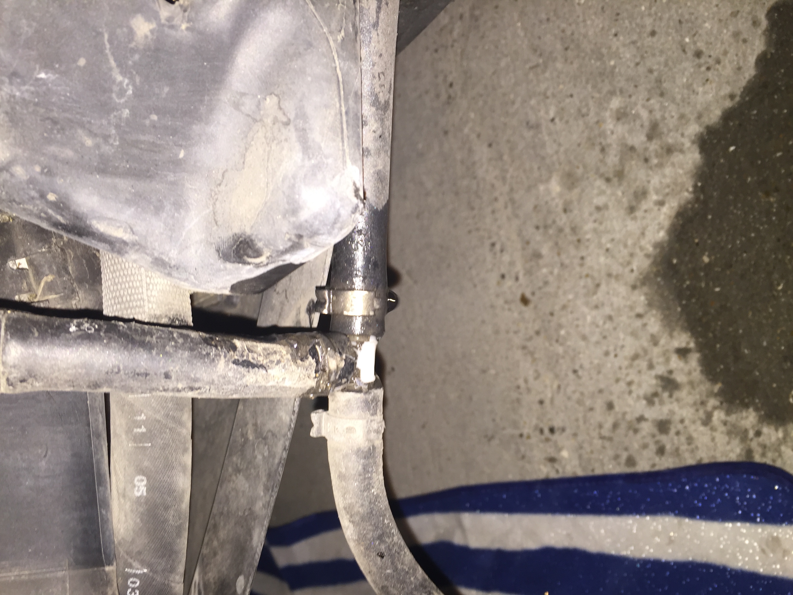 Hi guys, I've had the bumper off this morning and found a leak just in front of the passenger wheel. It looks like water, it's been leaking since I got the car a couple of months ago but just assumed it was the AC. One of the hoses has surface cracks so will need replacing so wondering firstly what it is and part numbers for hose and T connection.
