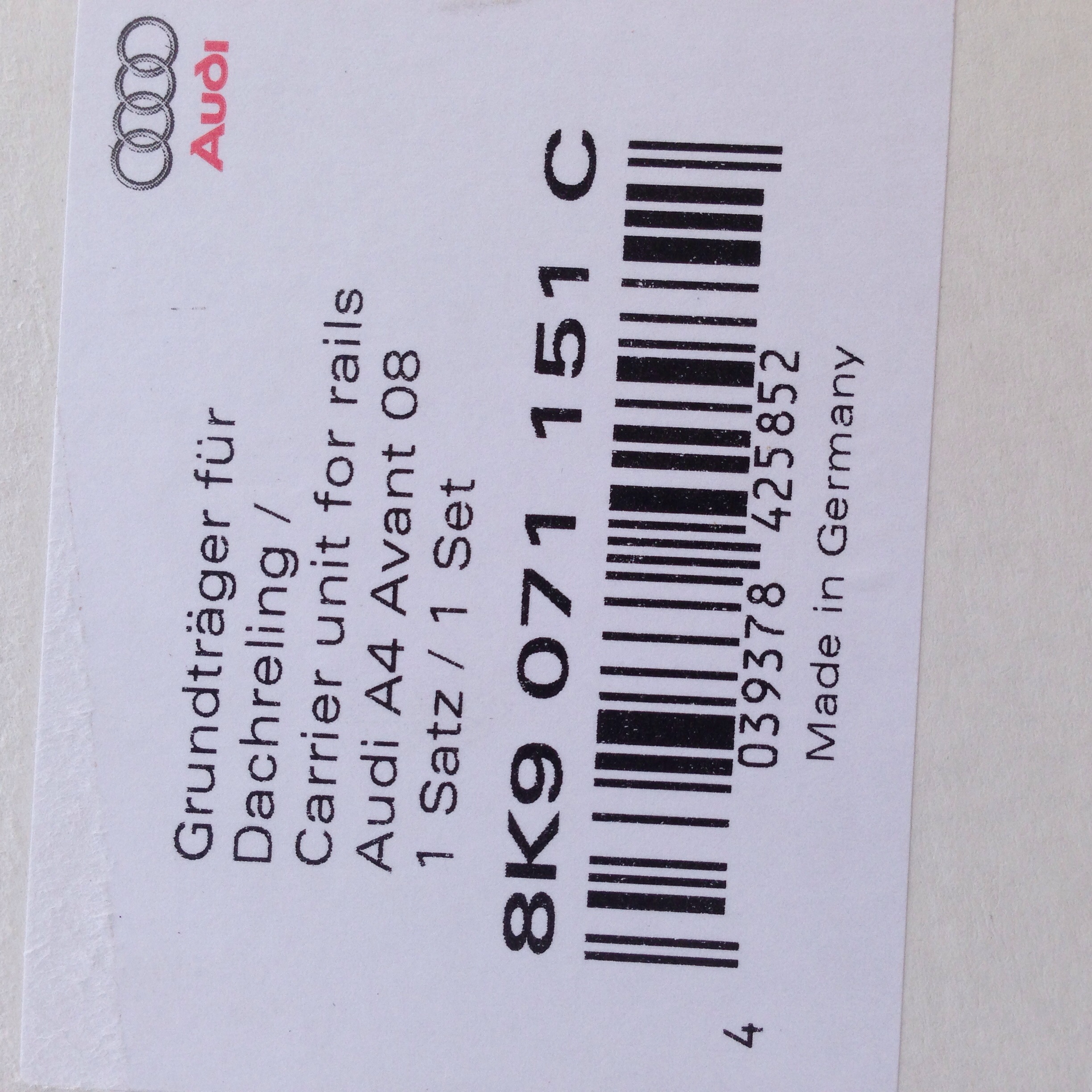 Yes, Audi logos on a Thule ProRide 591 roof mounted bike carrier. I'm not sure which 'Thule' mounting kit is used, but here is a close-up shot.Graeme4130 wrote:Are they Audi branded Thule bars and rack ?