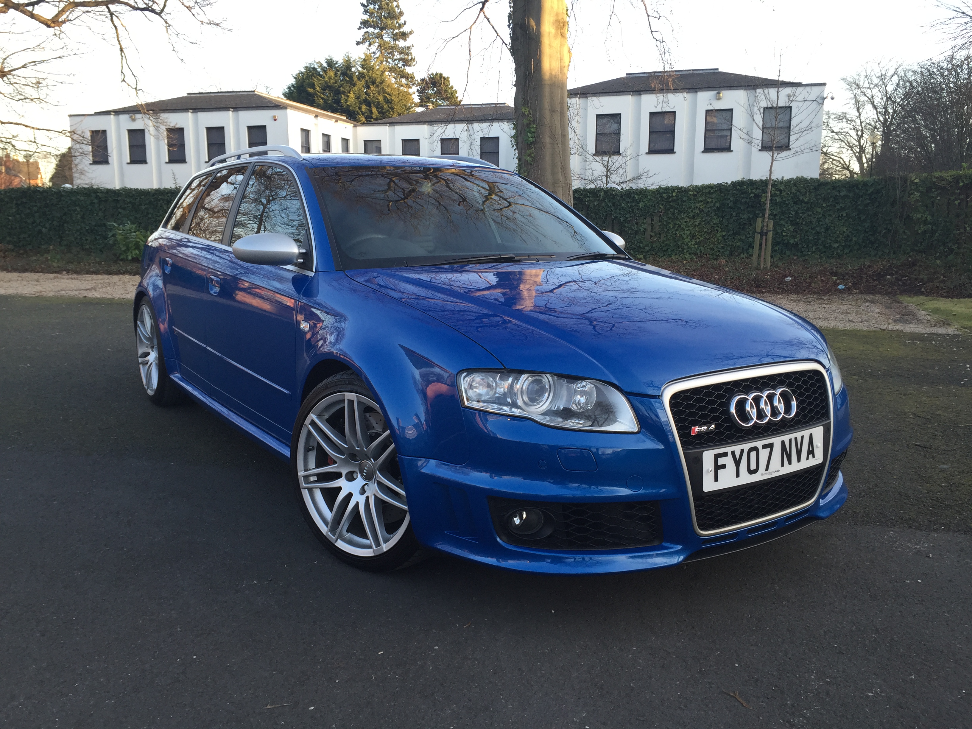 Very well Looked Aftered AUDI RS4 Avant Quattro In Sprint Blue 2 Owners Very Clean Example Comes With +++FULL AUDI SERVICE HISTORY+++,Serviced At 12K,24K,36K,40K,48K,51K Recently Serviced Also Brake Discs And Pads Changed From AUDI,X2 Keys,MOT due on 24/01/2016,Front and rear parking sensors,Colour DVD-Based Satellite Navigation Plus,Bose surround sound speaker system, Multi Function Flat Bottom Steering Wheel,Push Button Start.Carbon Effect Dashboard,Adjustable steering column,Heated Black Leather RS4 Adaptive Bucket Sports Seats, Bluetooth Handsfree,2 SD Card Slots, IPod Connection, with 6 CD Auto changer,19 Inch 7 Spoke Alloy Wheels,Roof Rails,Tyre condition Excellent,Four wheel-drive,Climate Control,Cruise Control,Alarm,Immobiliser,Remote Central Locking,Excellent bodywork,Excellent Condition,This car has perfect Specification and is ready for sale