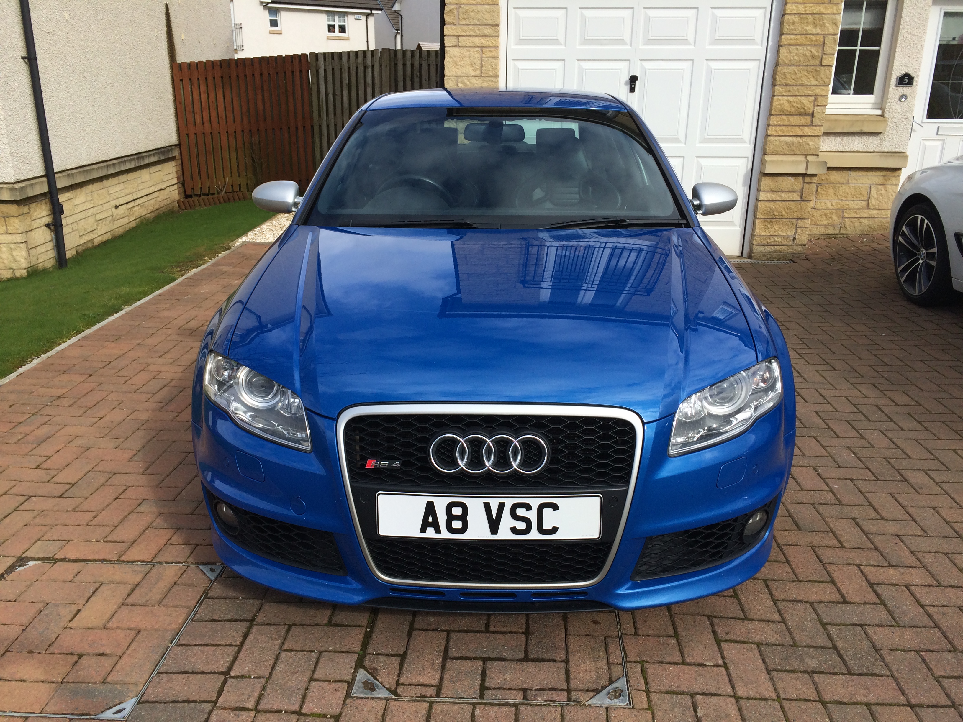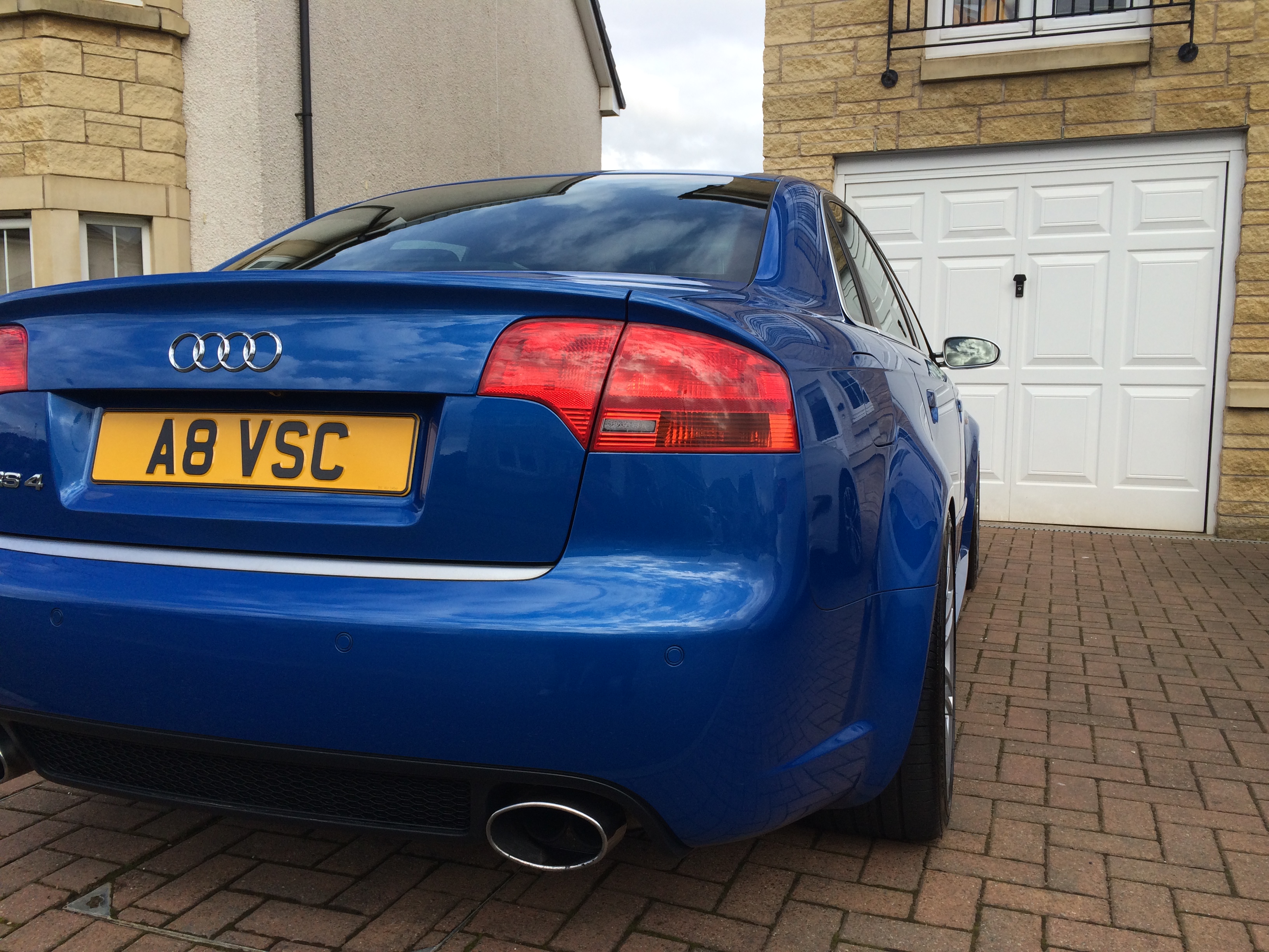 RS4 B7 Saloon Sprint Blue, Bilstein B14 Coilovers, Milltek Cat Back resonated non valved. Spacers 8mm F and 10mm R. Headlight clear zenon lens upgrade with 5500k bulbs plus indicator orange lens delete.