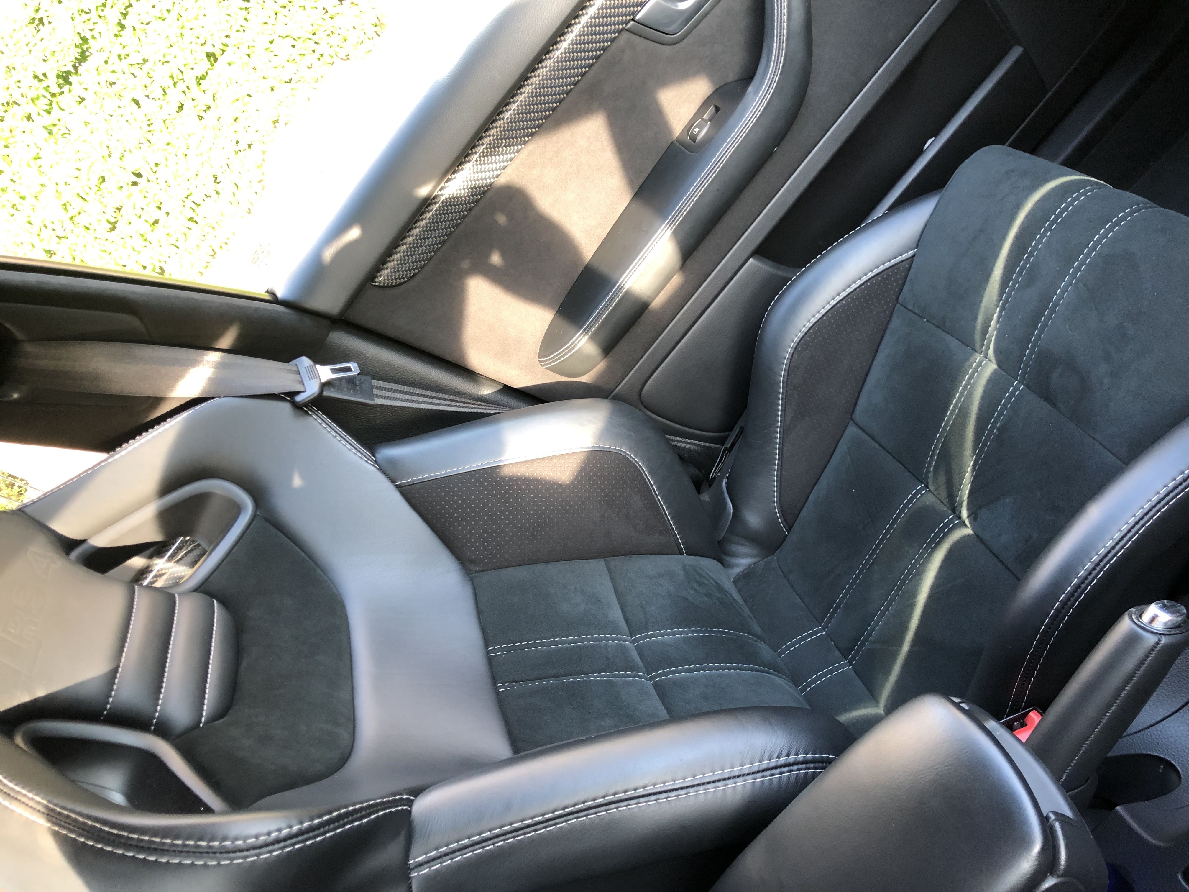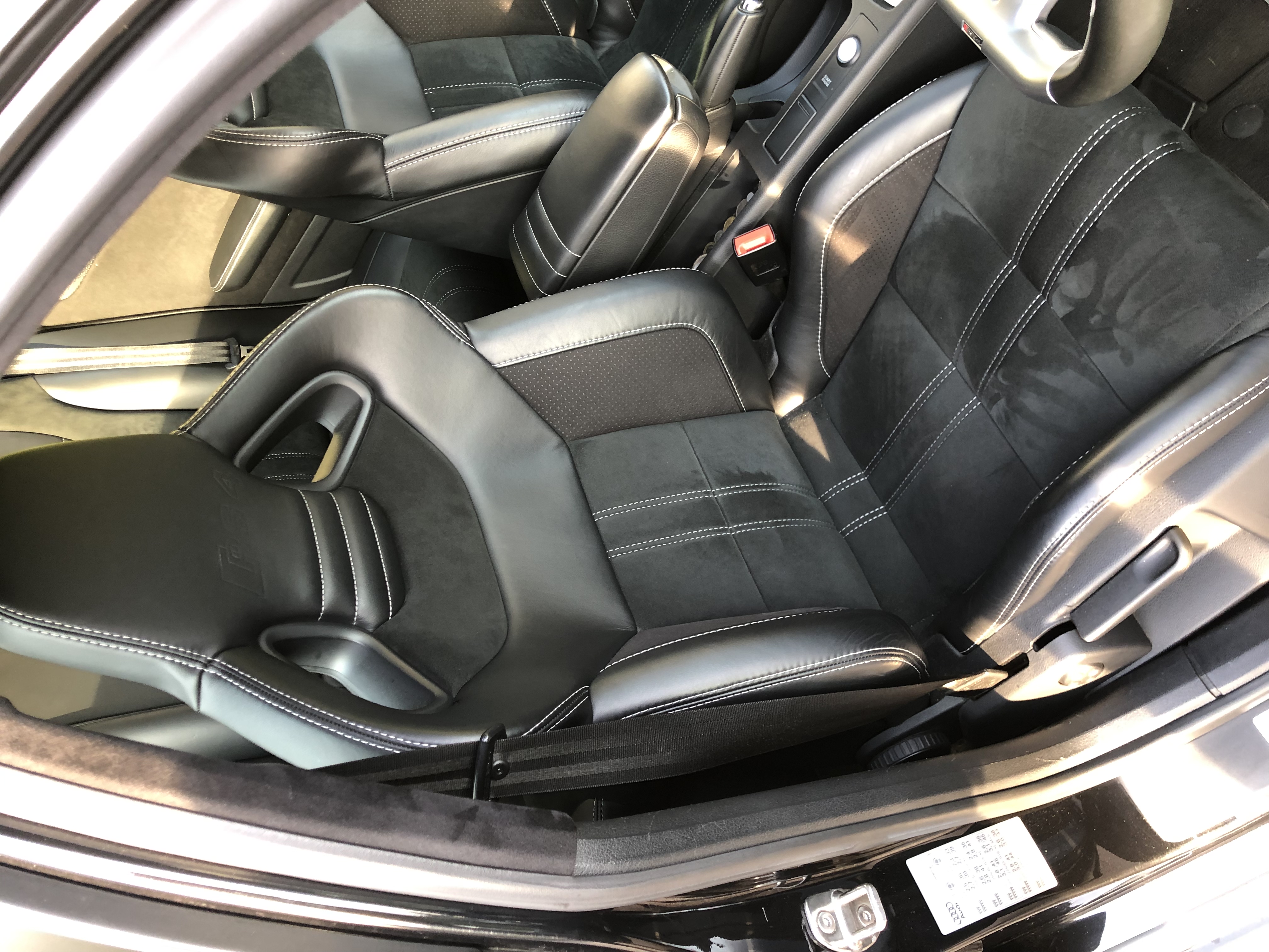 Full Plush internal retrim in black napa leather and alcantara with silver stitching. This includes seats, pillars, roof, armrest, steering wheel, gear gaiter and knob