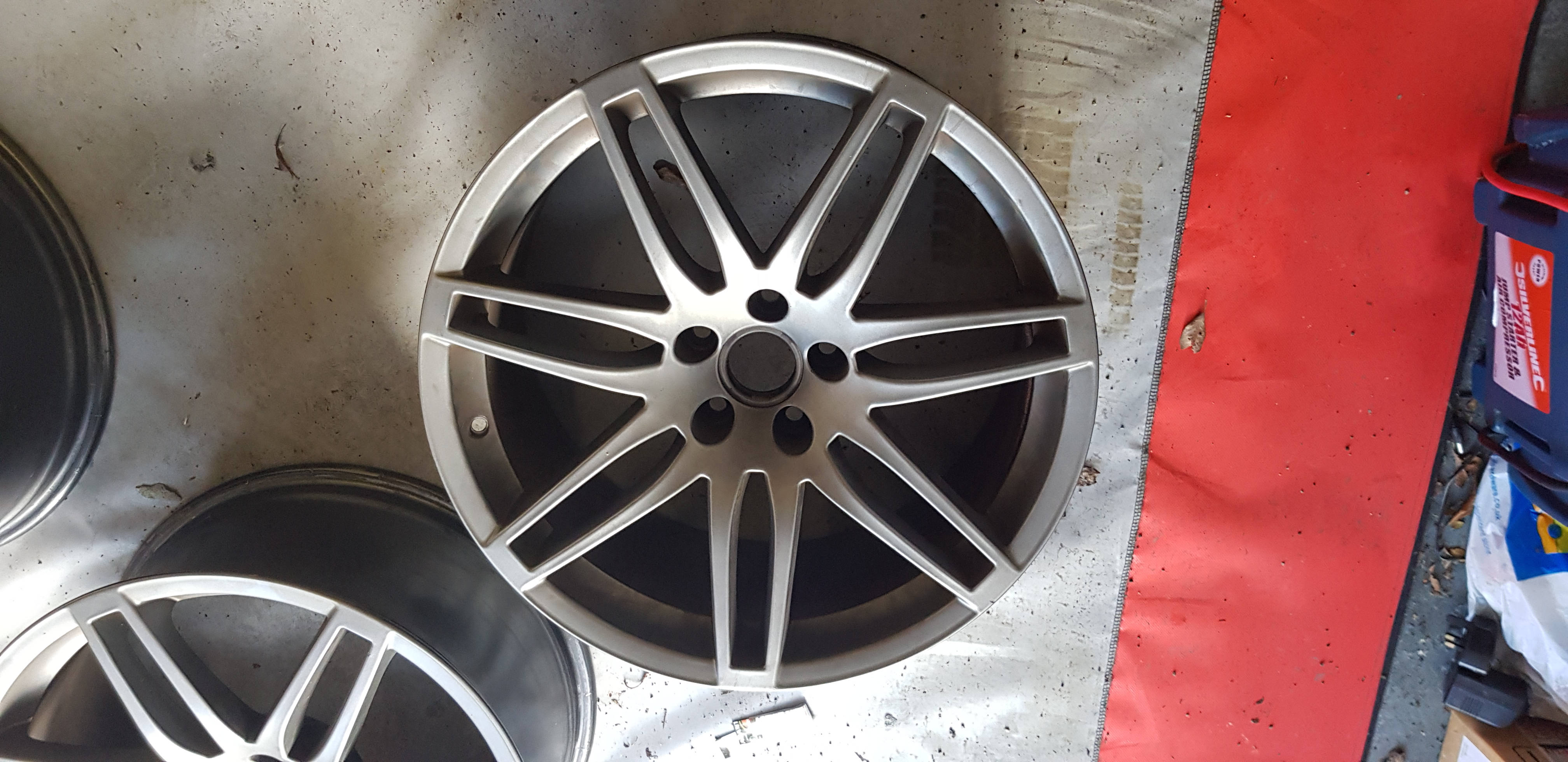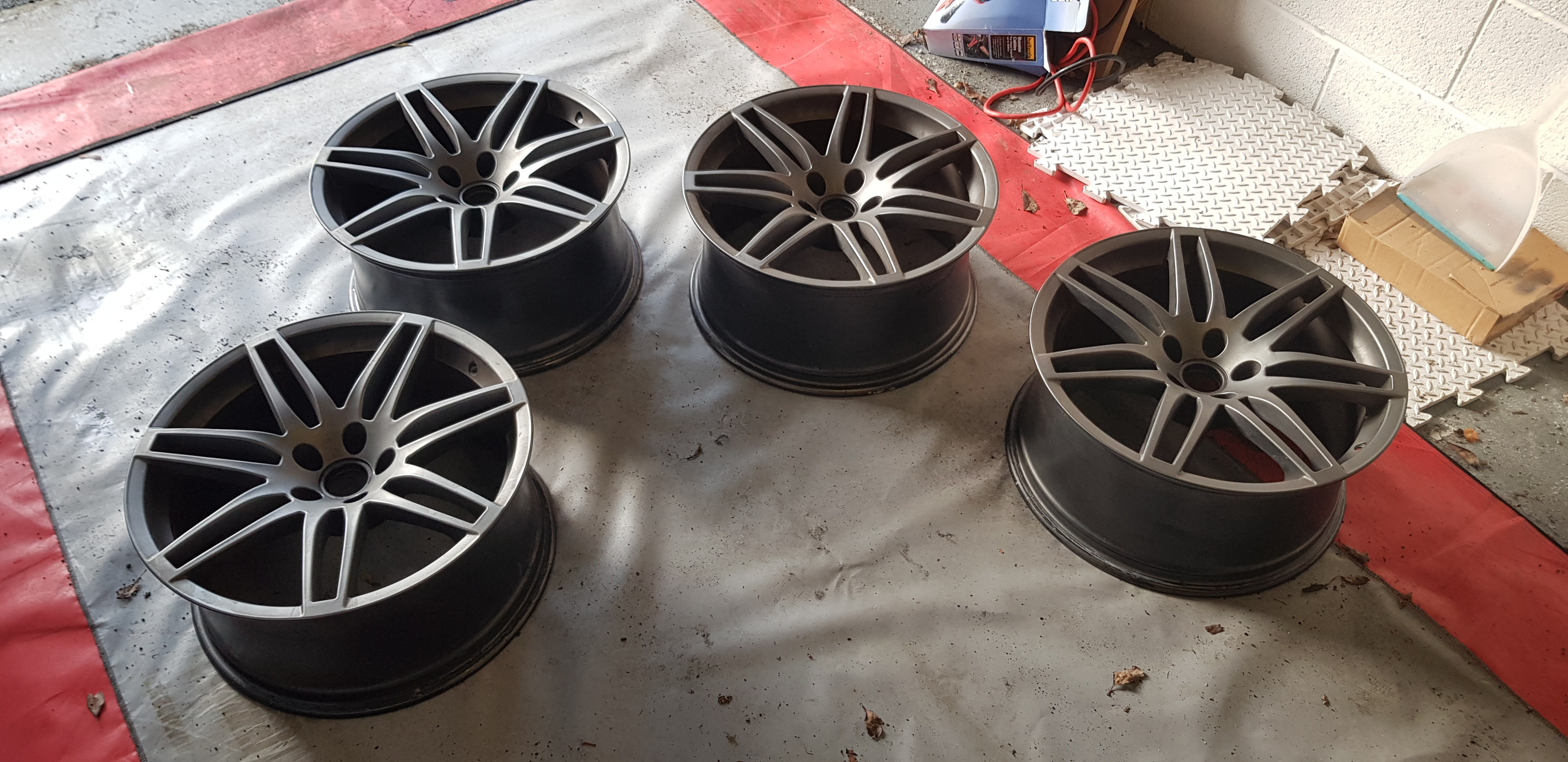 SOLD -My extra set of 4 genuine 19" 9J ET29 wheels. They were refurbished and painted Audi matt grey 3 years ago, but now have marks (as in stone chips) in line with being on the car those 3 years, plus having the tyres taken off. No curbing, deep scrapes, etc. Can be used as is, but I'd have them redone if I was to use them again.