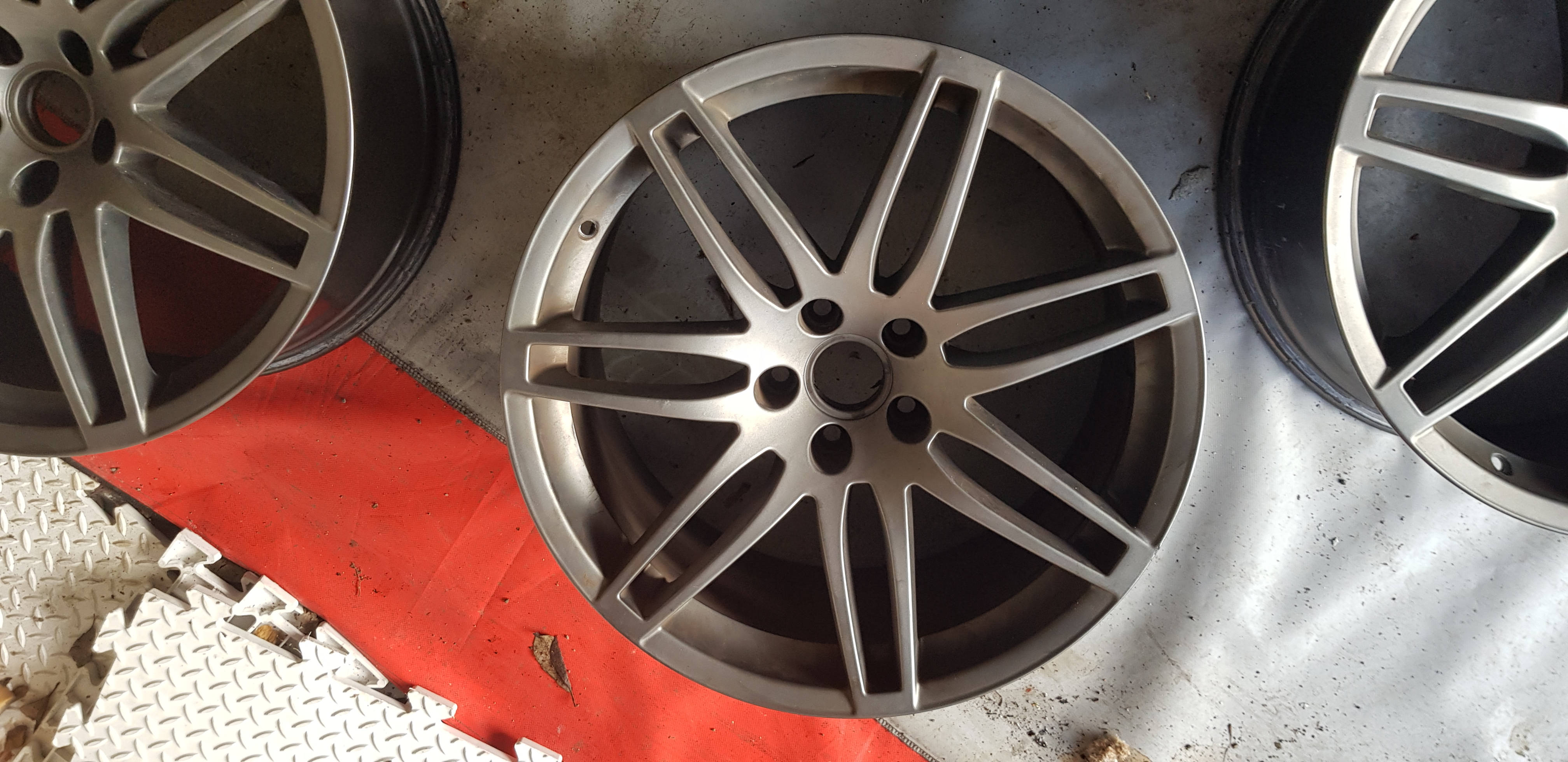 SOLD -My extra set of 4 genuine 19" 9J ET29 wheels. They were refurbished and painted Audi matt grey 3 years ago, but now have marks (as in stone chips) in line with being on the car those 3 years, plus having the tyres taken off. No curbing, deep scrapes, etc. Can be used as is, but I'd have them redone if I was to use them again.