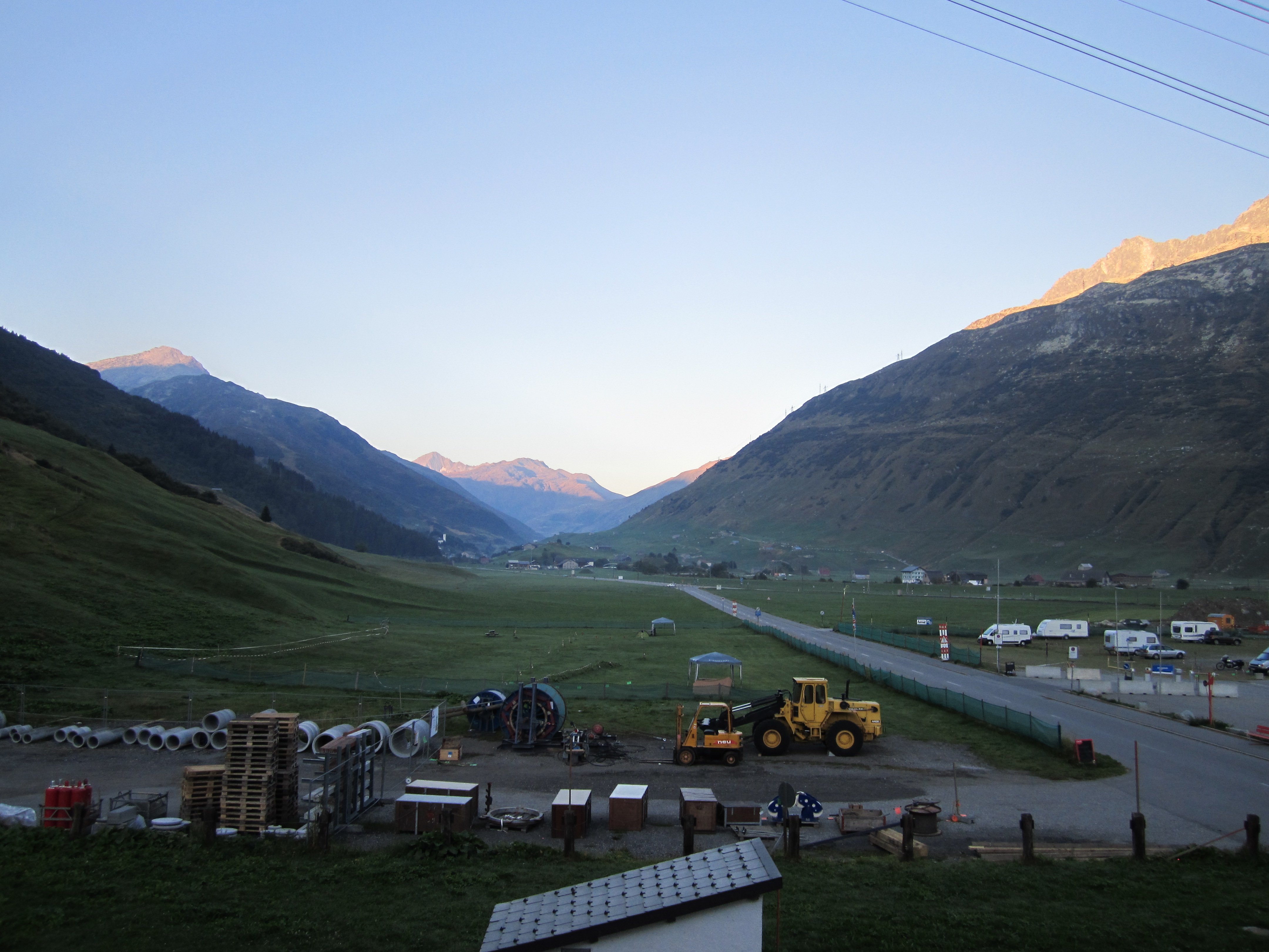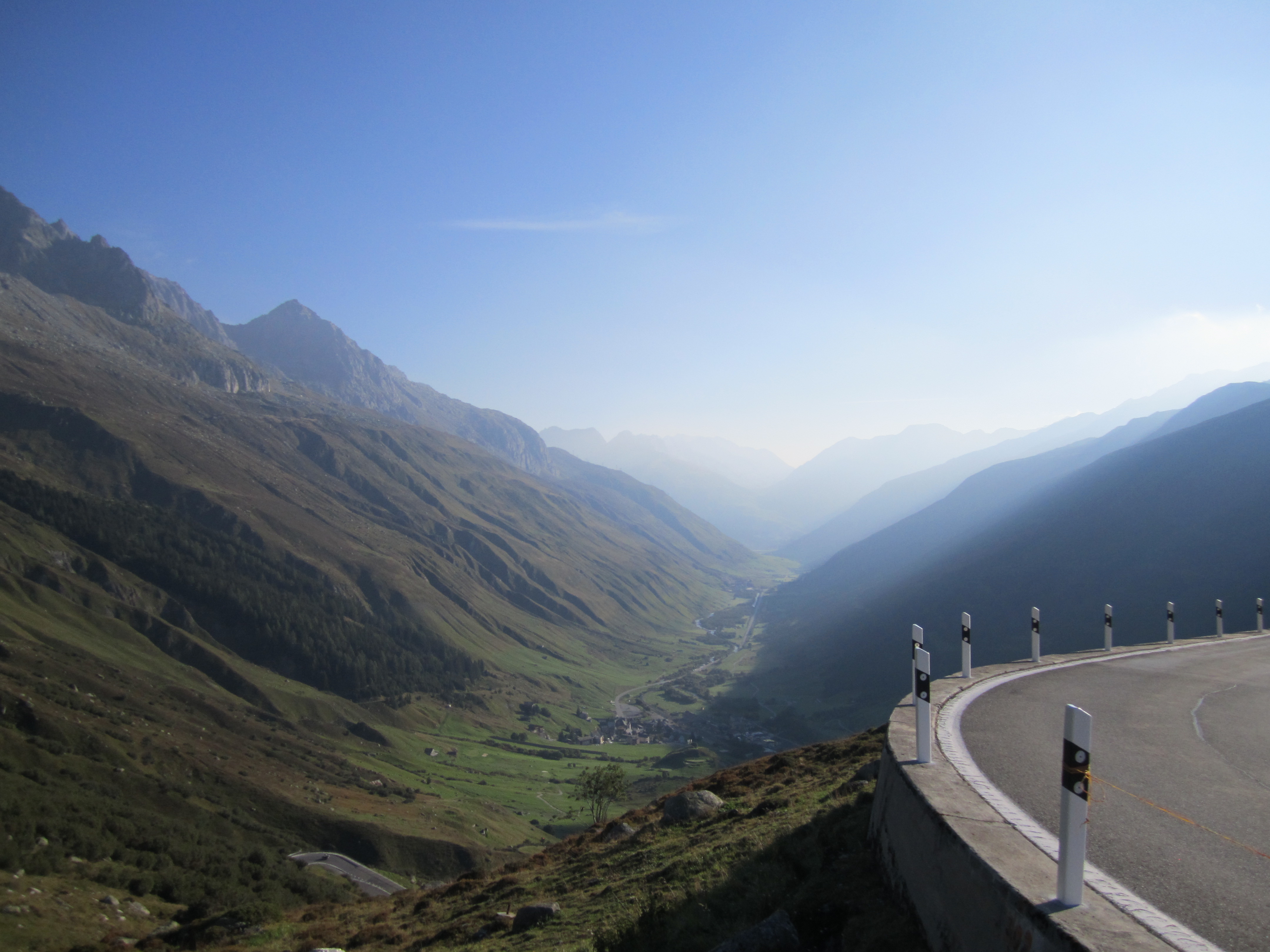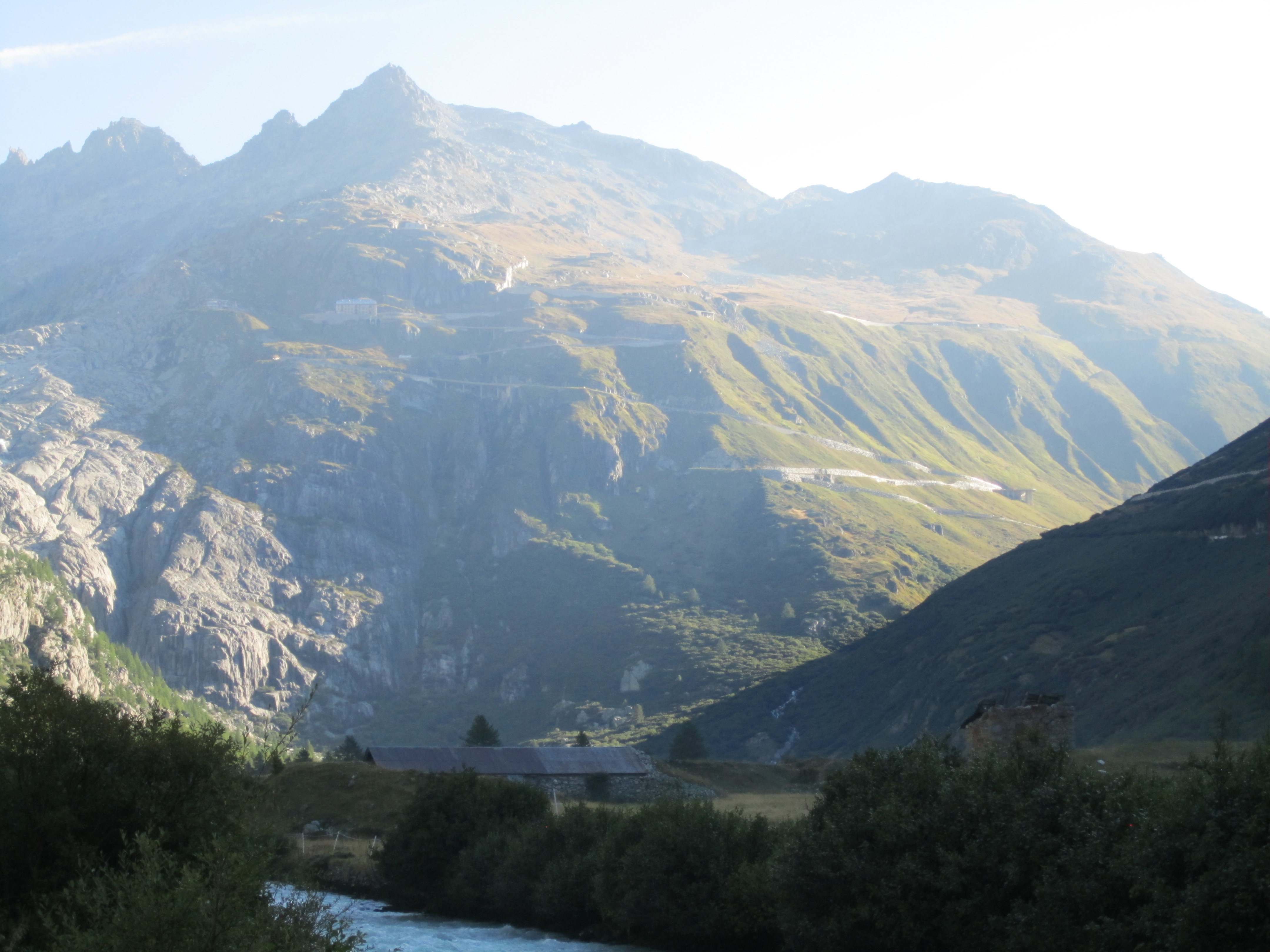 Great drive after watching F1 qualifying. Was approaching dusk when we reached Gotthard Pass so we bed down in Hotel Aurora in Andermatt. Great hotel and breakfast, rested and ready for Grimsel Pass.