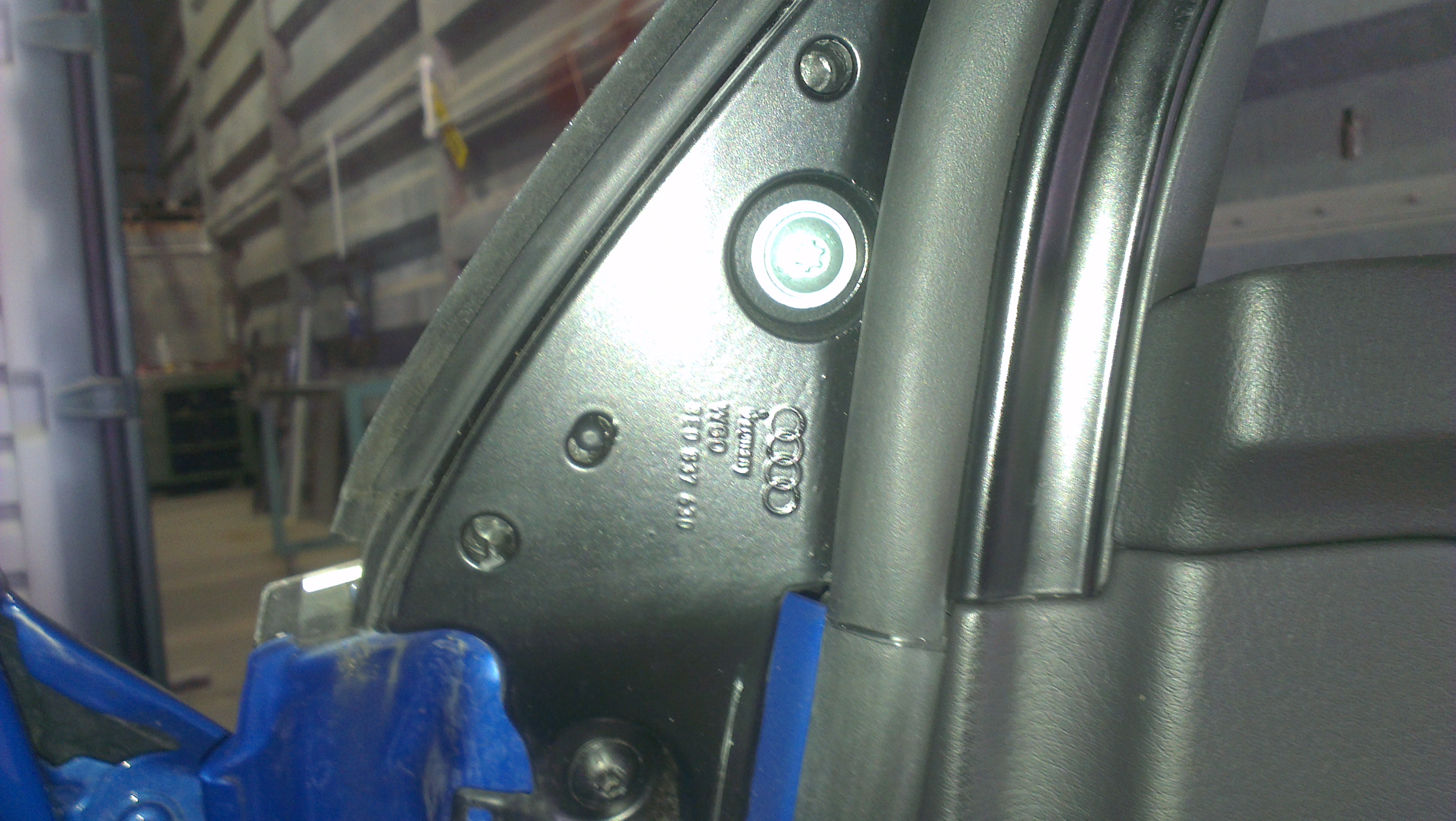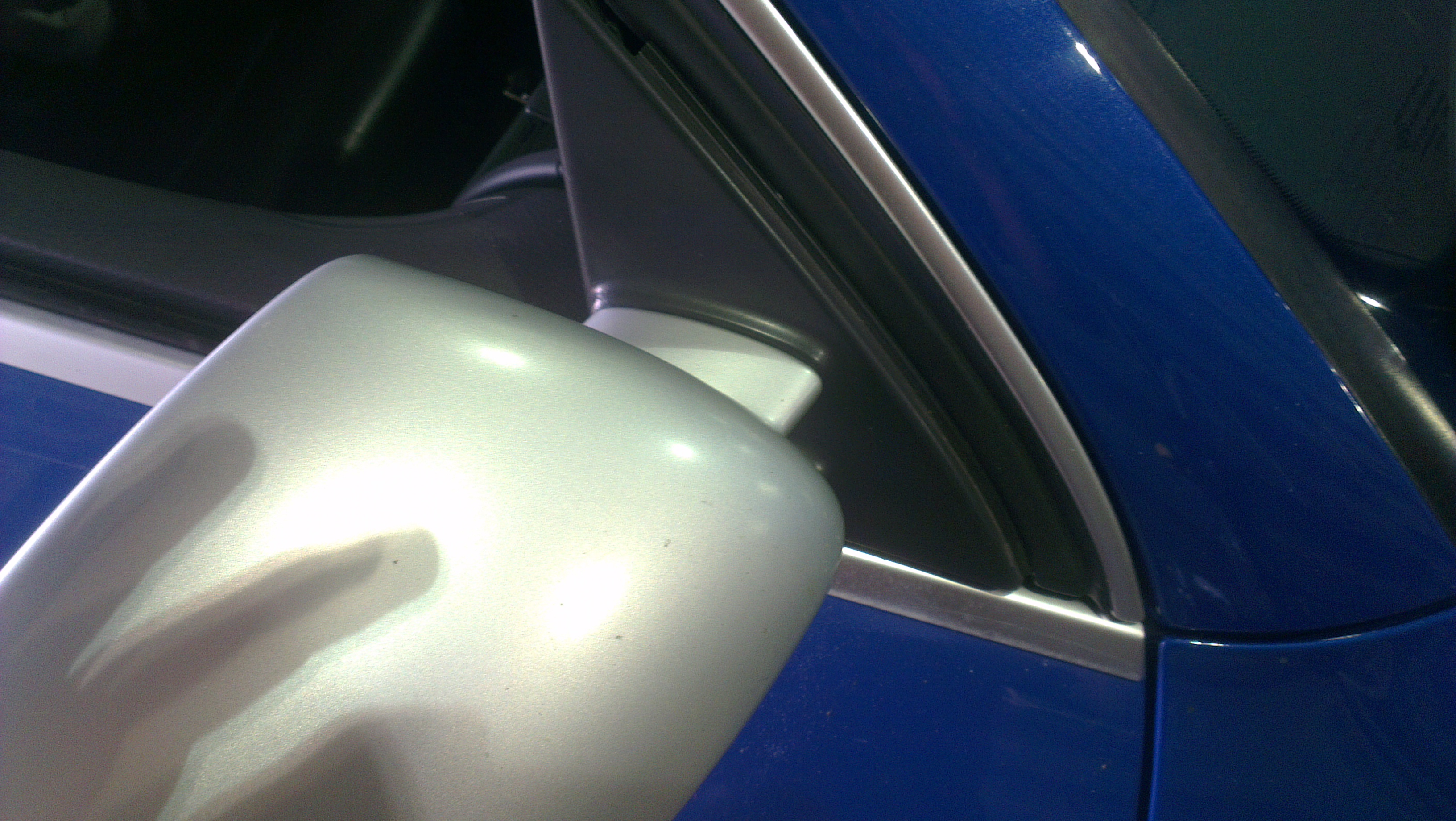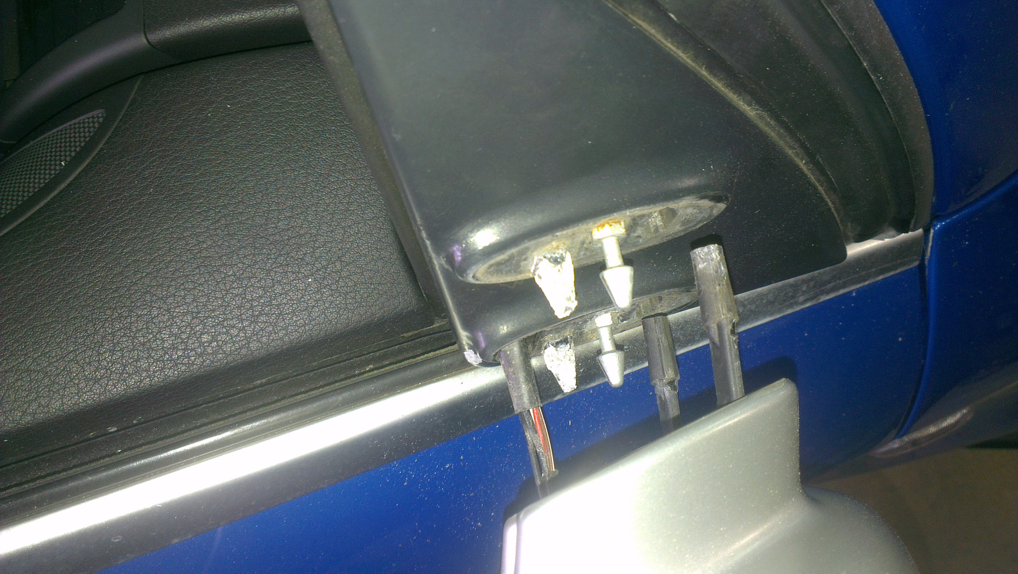 i use a trim tool for this but again you can use your fingers, this just unclips. now undo the large silver torx. from the outside pull your door mirror down and out, this will be tight as the black mounting plate is tucked behind your rubbers. once the mirror is removed(but still attached at this point by the wires), remove the two small torx from behind the black triangle mounting plate. now re-attach the mirror to the door with the large silver torx, dont worry about tucking the top part behind the rubber just tuck the bottom in and nip up the torx just enough to hold the mirror.