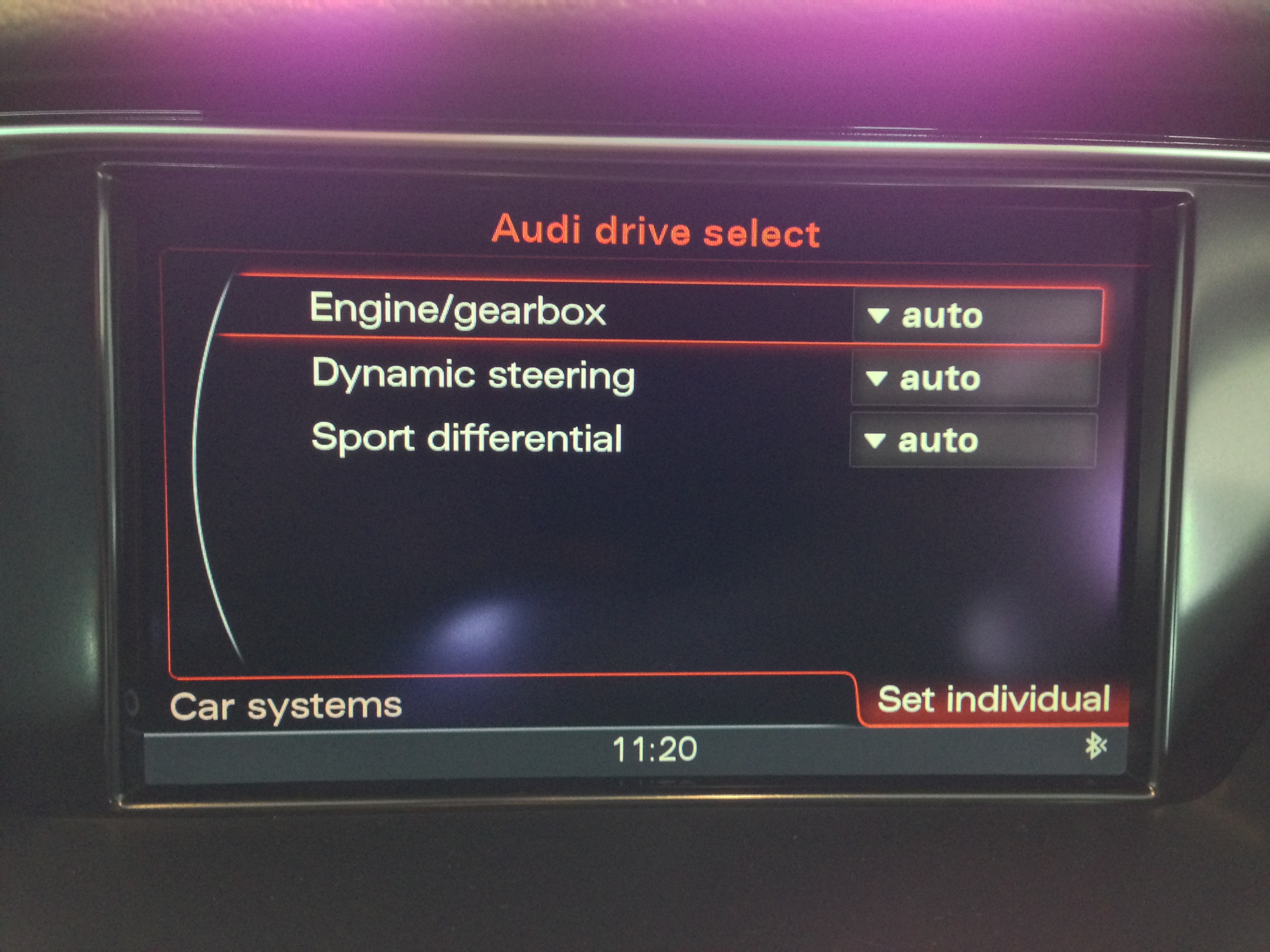 I got the car for a week and thought the Audi Drive select system is quite intuitive. Before I got the car I couldn't find much about it so I thought I should write a short blurb for would be owners. It would also help with the options ordering process. I will get to that in a minute.