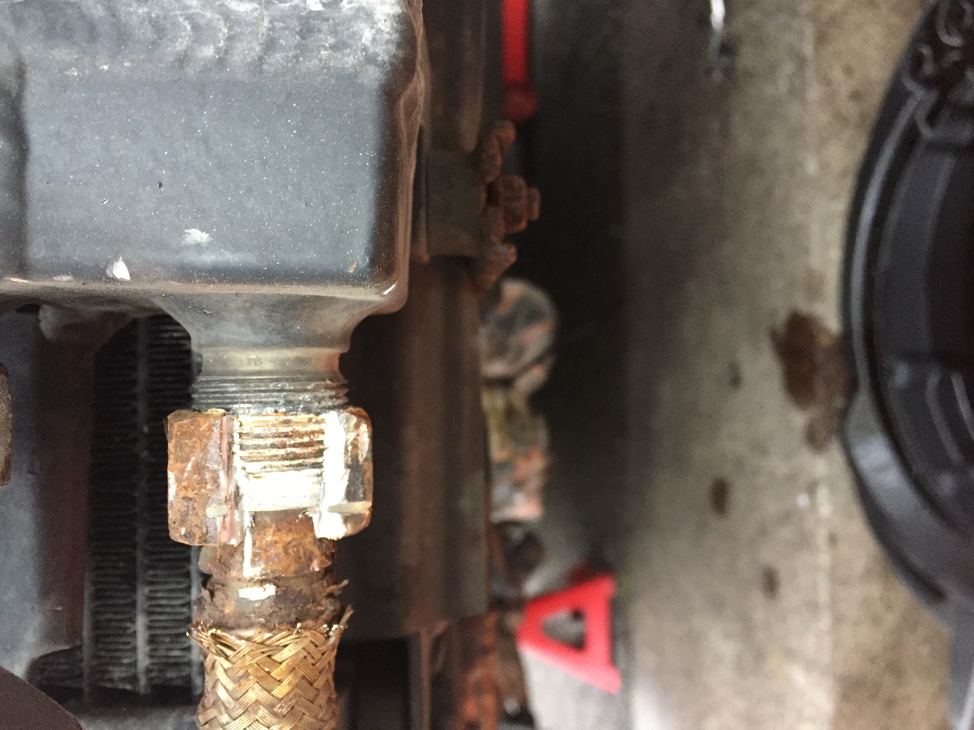 ........................... my plan was to gently cut twice (180 degrees) into the steel connector end on the rad hose, down to just where you could start to see you were coming down to alu thread, then crack/spread with a big flathead screwdriver to leave the alu thread in pretty well mint condition.......................