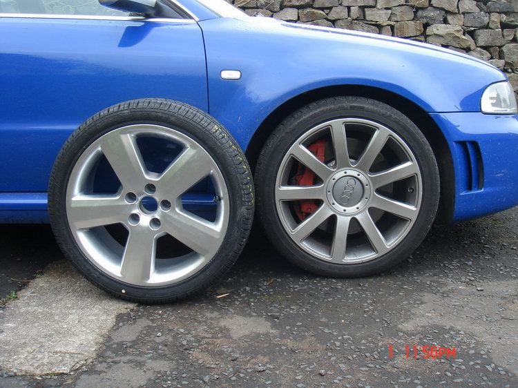 the correct spare for the rs4 is called a winter wheel. its 7.5x18 and wears a 225 tyre. it looks like a rs6 wheel having 5 spokes but has the correct et20 offset. and has a polystryene insert inside it for the jerk etc :nogarors4:
