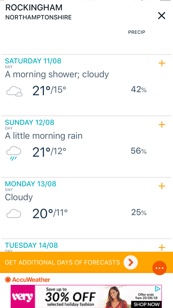 Looking at the weather it maybe a small chance of rain. So I will bring my pop up gazebo.