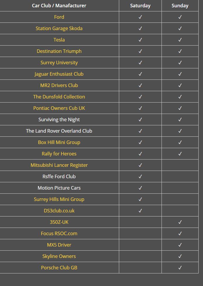 List of other car clubs that will be in attendance: