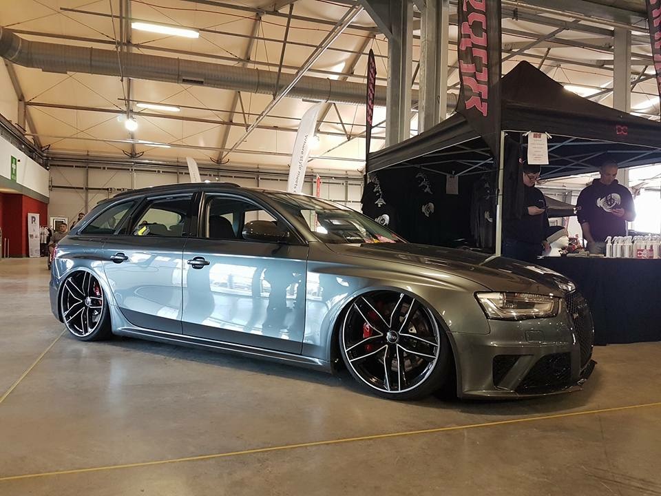 B7 RS4 Saloon, Phantom Black, Forge Oil Cooler Kit, 20 x 10.5j Vossens, Carbon Front Splitter, KW V3 Coilovers, Adjustable Front Arms, 20mm Spacers, Revolution Carbon Air Box, Rear 4 Pot Porsche Brake Conversion, Stud & Nut Kit, Milltek Non Res Non Valved Exhaust, RS6 Gloss Black Grill, Slightly Tinted Windows, JH Motorsports Stage 3R Clutch & Lightweight Flywheel, Robnic Braided Clutch Line. JH Motorsports Lightweight Grooved F & R Rotors with Braided Hoses and Hawk Pads