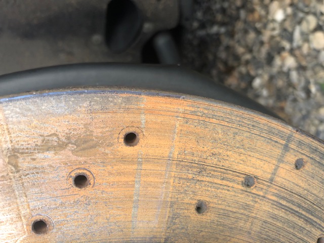 Had quiet a bad stearing wheel shake, I thought I had warped discs so bought a new set because they where a bargain. on reading up and digging deeper I found a few more things to try before I changed them,one was having blocked holes on the front discs. After looking closer they where all bunged up with brake gunk. The fix was to redrill the holes so I took wheels off and did this top holes are done bottom holes are not! You can see the difference.