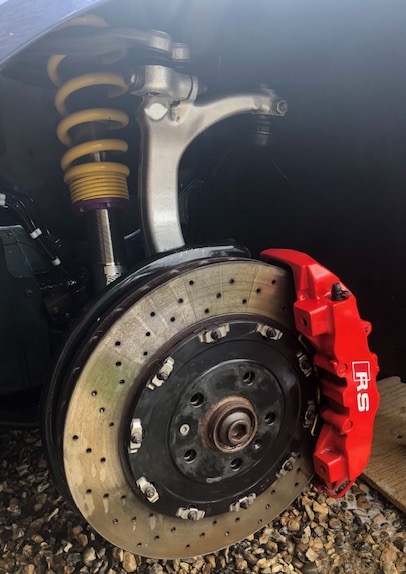 B7 RS4 Saloon, Phantom Black, Forge Oil Cooler Kit, 20 x 10.5j Vossens, Carbon Front Splitter, KW V3 Coilovers, Adjustable Front Arms, 20mm Spacers, Revolution Carbon Air Box, Rear 4 Pot Porsche Brake Conversion, Stud & Nut Kit, Milltek Non Res Non Valved Exhaust, RS6 Gloss Black Grill, Slightly Tinted Windows, JH Motorsports Stage 3R Clutch & Lightweight Flywheel, Robnic Braided Clutch Line. JH Motorsports Lightweight Grooved F & R Rotors with Braided Hoses and Hawk Pads