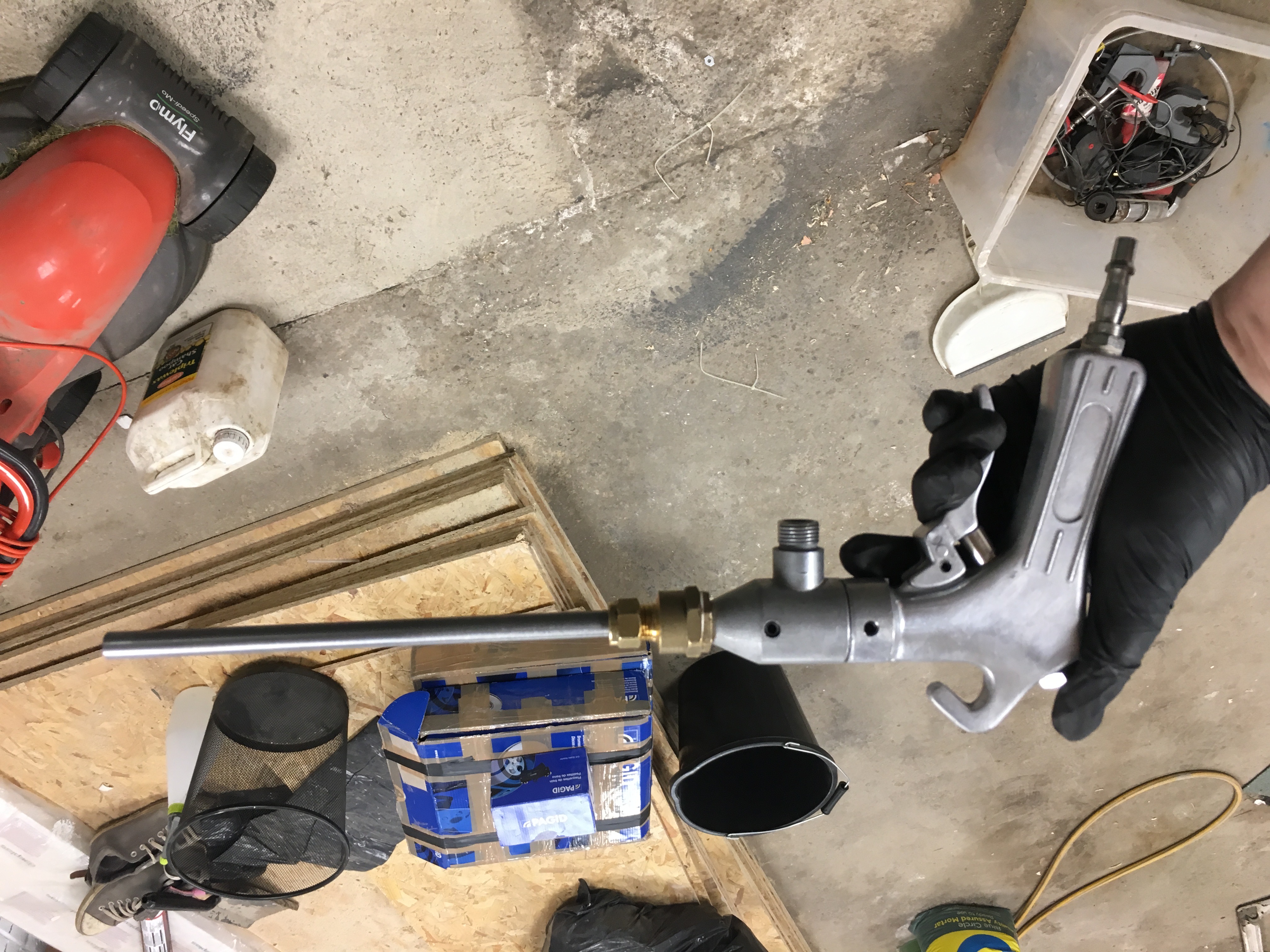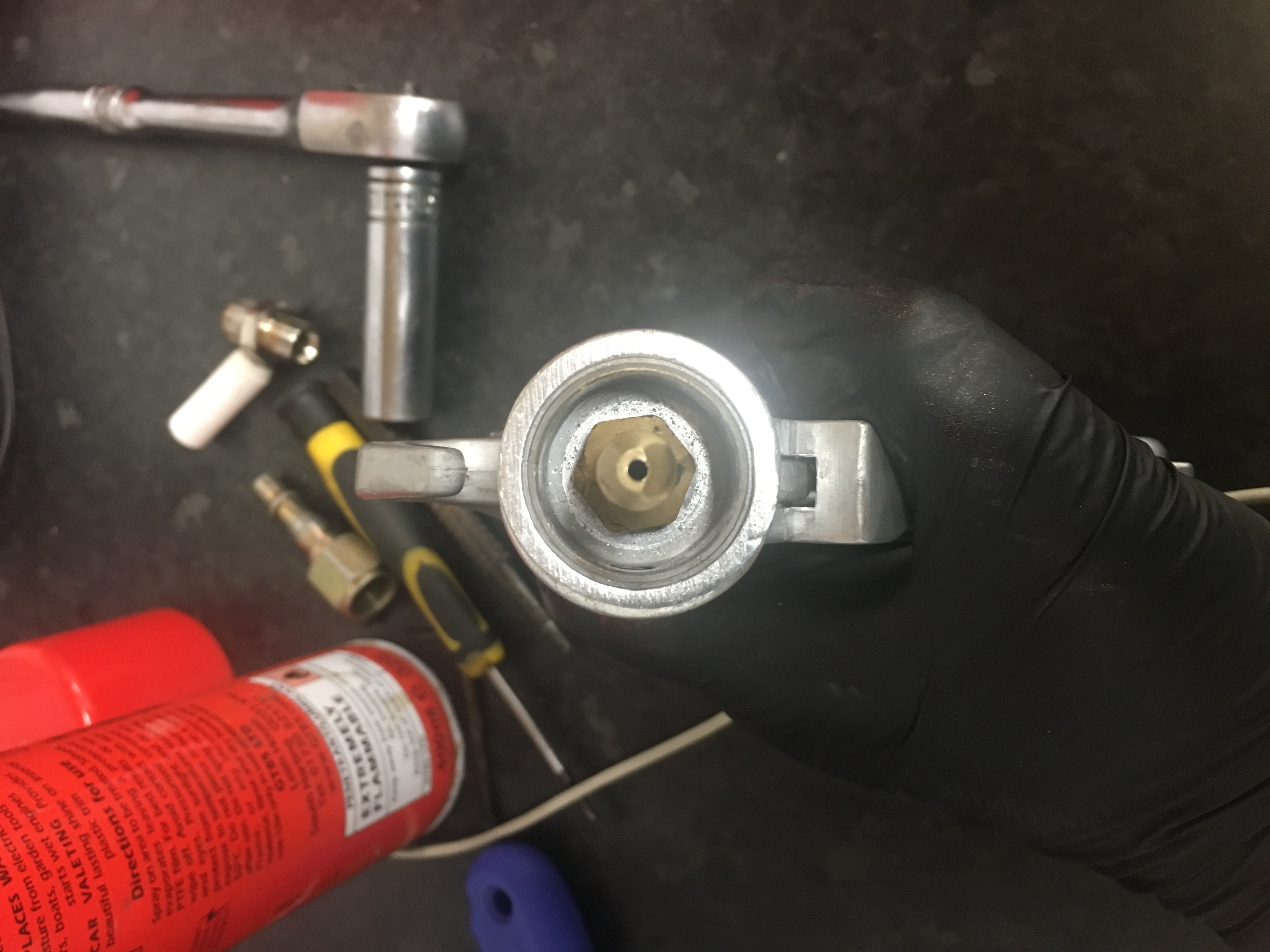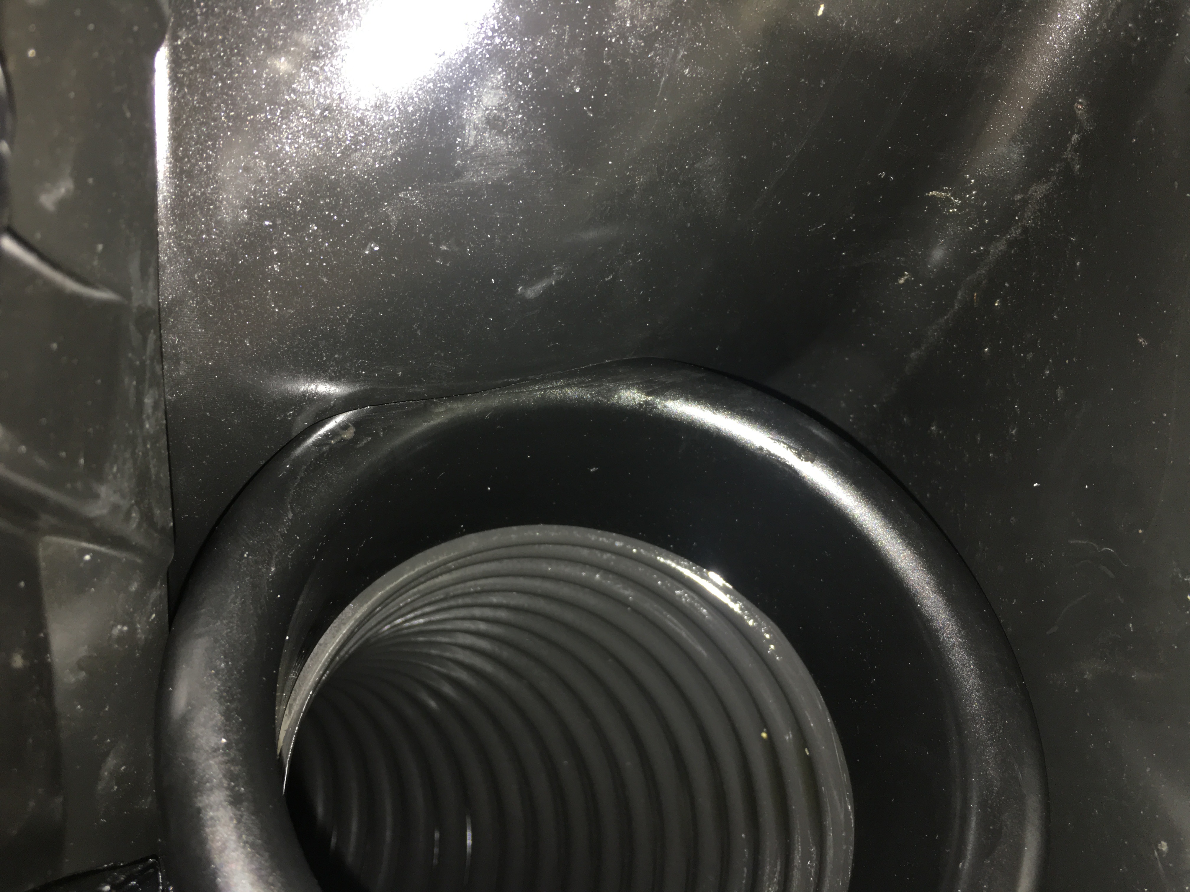 Then I cut an appropriate hole with a hole saw in the airbox so it was as close to the lower edges as possible, and bonded the connector in with super strong glue that comes with an activator spray.