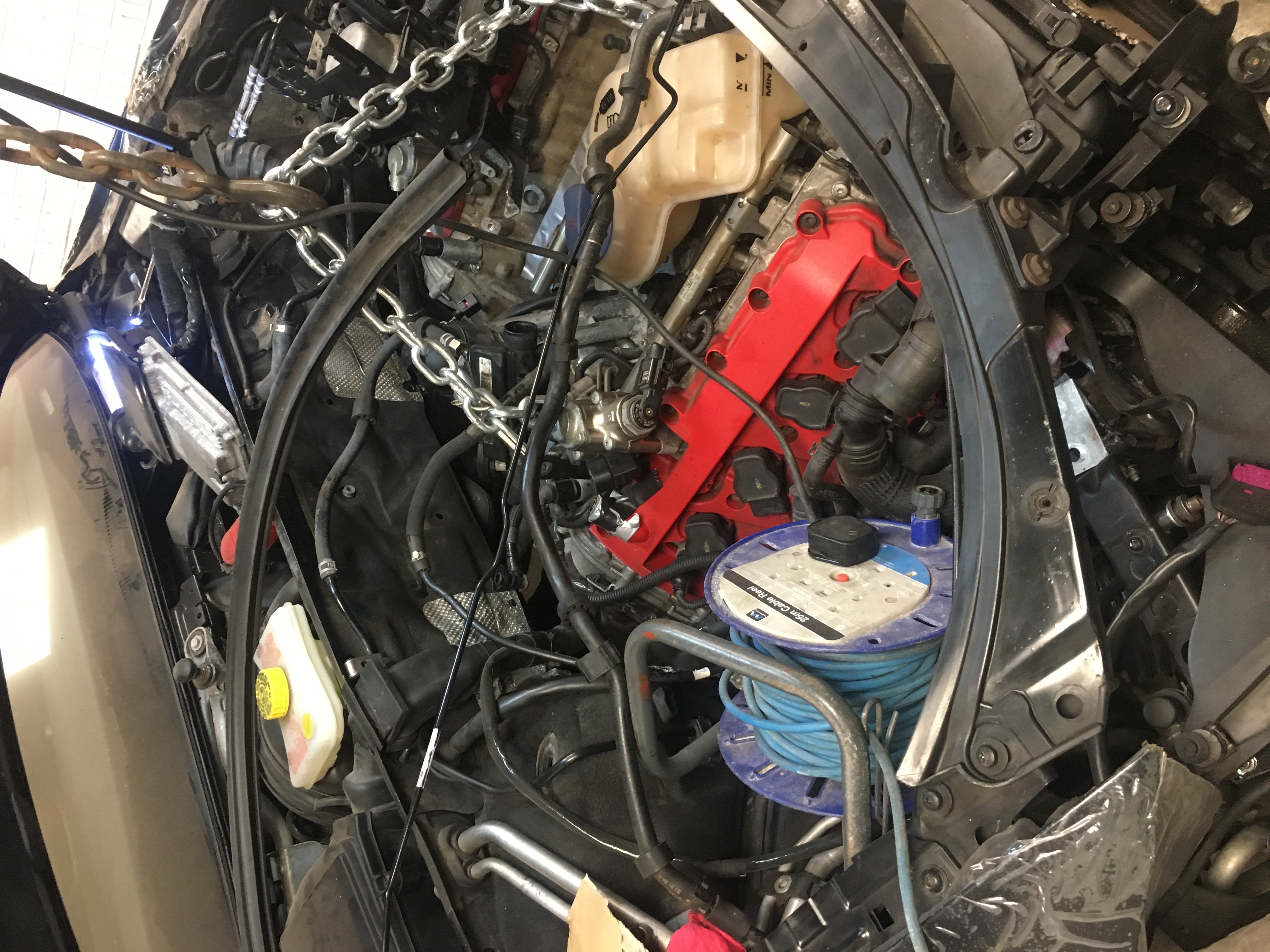 And set about attaching the air hose to the air guide, the trumpet needed a bit taking off to fit behind the grills and is then secured with a M5 c-clip and screw from underneath and M5 button head screw through the side.