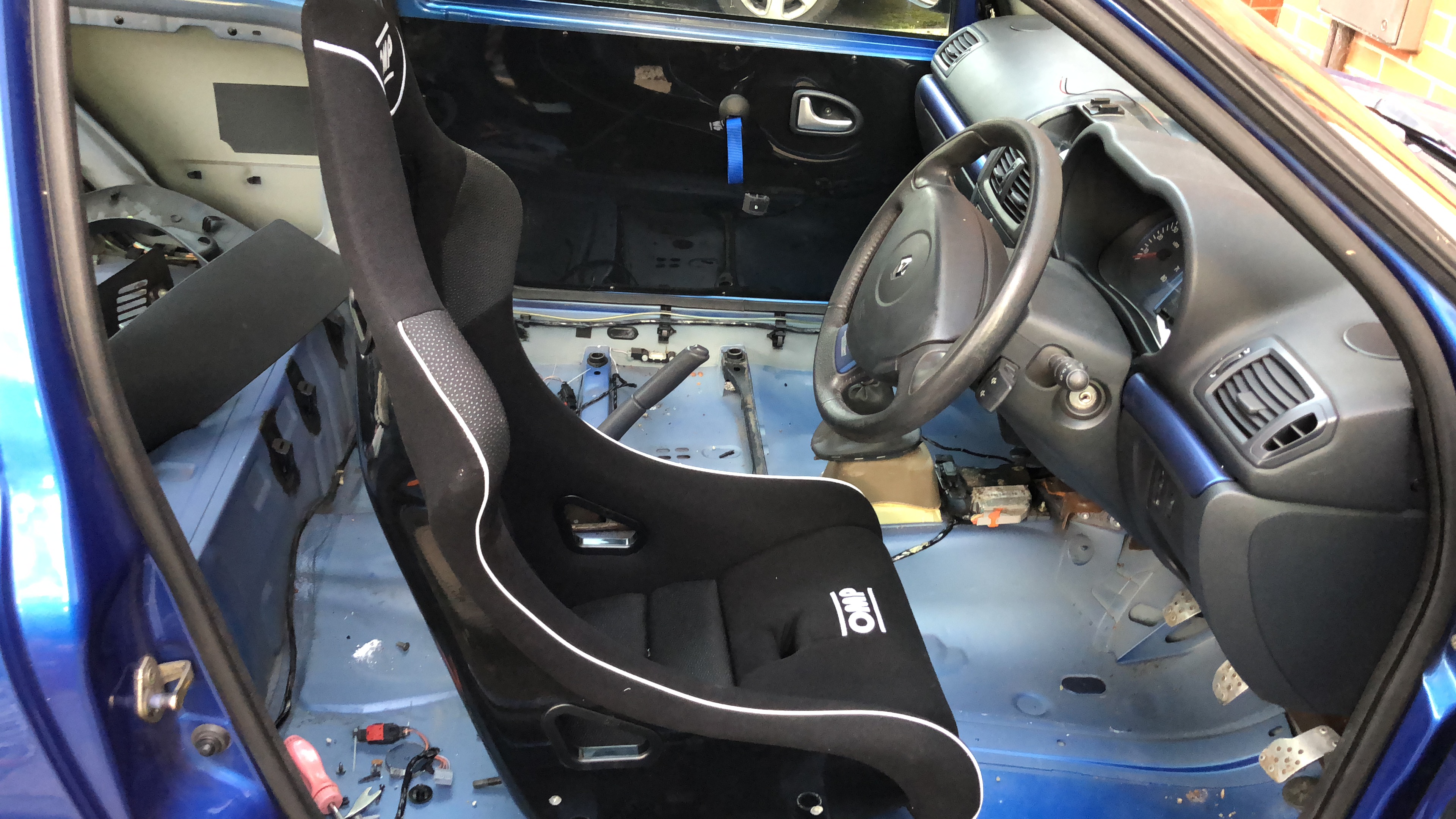 Finally had a bit of time to work on Babe and managed to completely strip out the remaining interior. Also did a spot of shopping and bought some OMP bucket seats and Harnesses. I couldn’t wait for a gearbox rebuild and LSD so in the meantime I’ve just had an OE clutch replaced and I can get back out and have a play. Hopefully I should have the seats,harnesses and a new Sparco steering wheel all fitted next week and be on track at Silverstone in November.