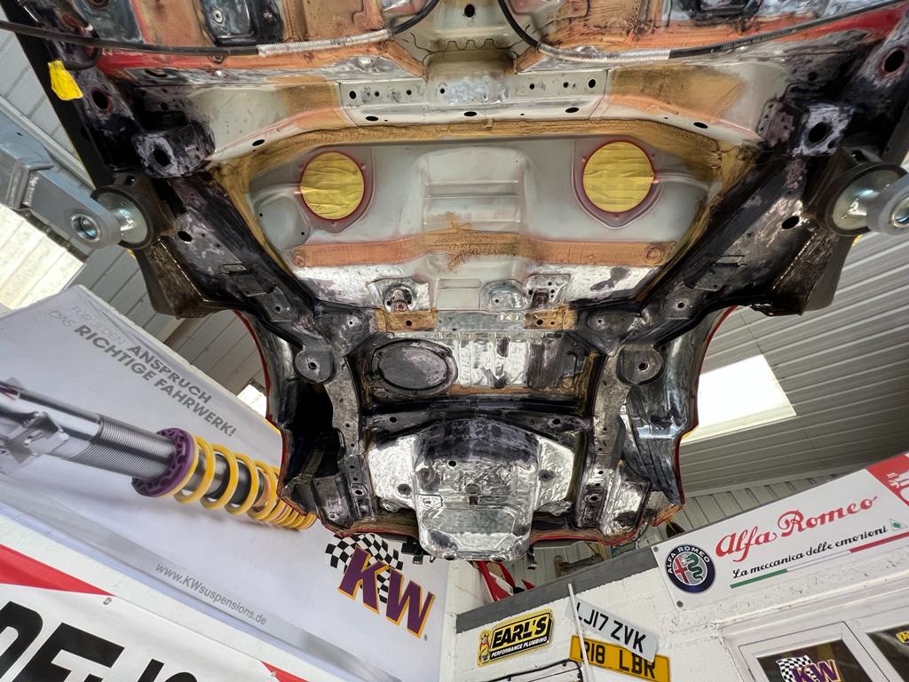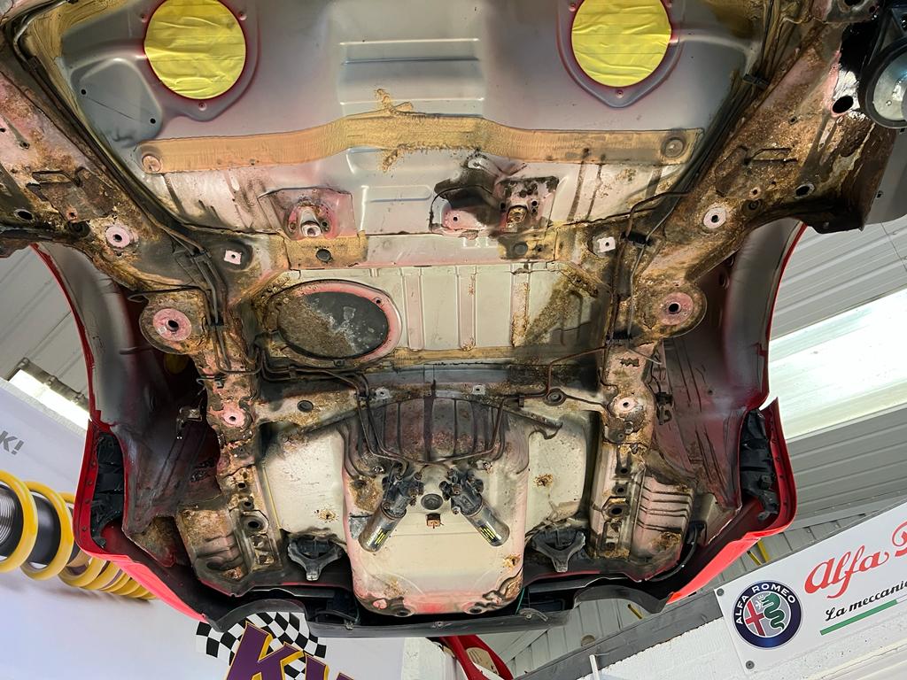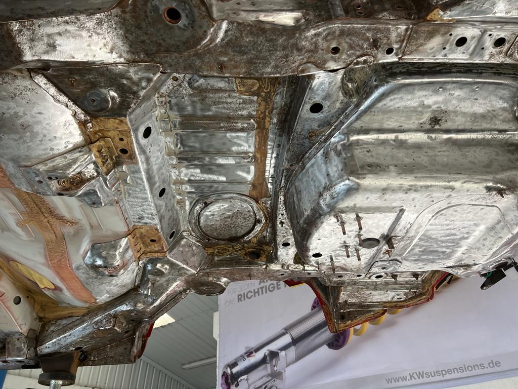 With most of the parts removed from the underside, everything was stripped back to the bare metal, de-corroded and then acid treated, before being sealed.