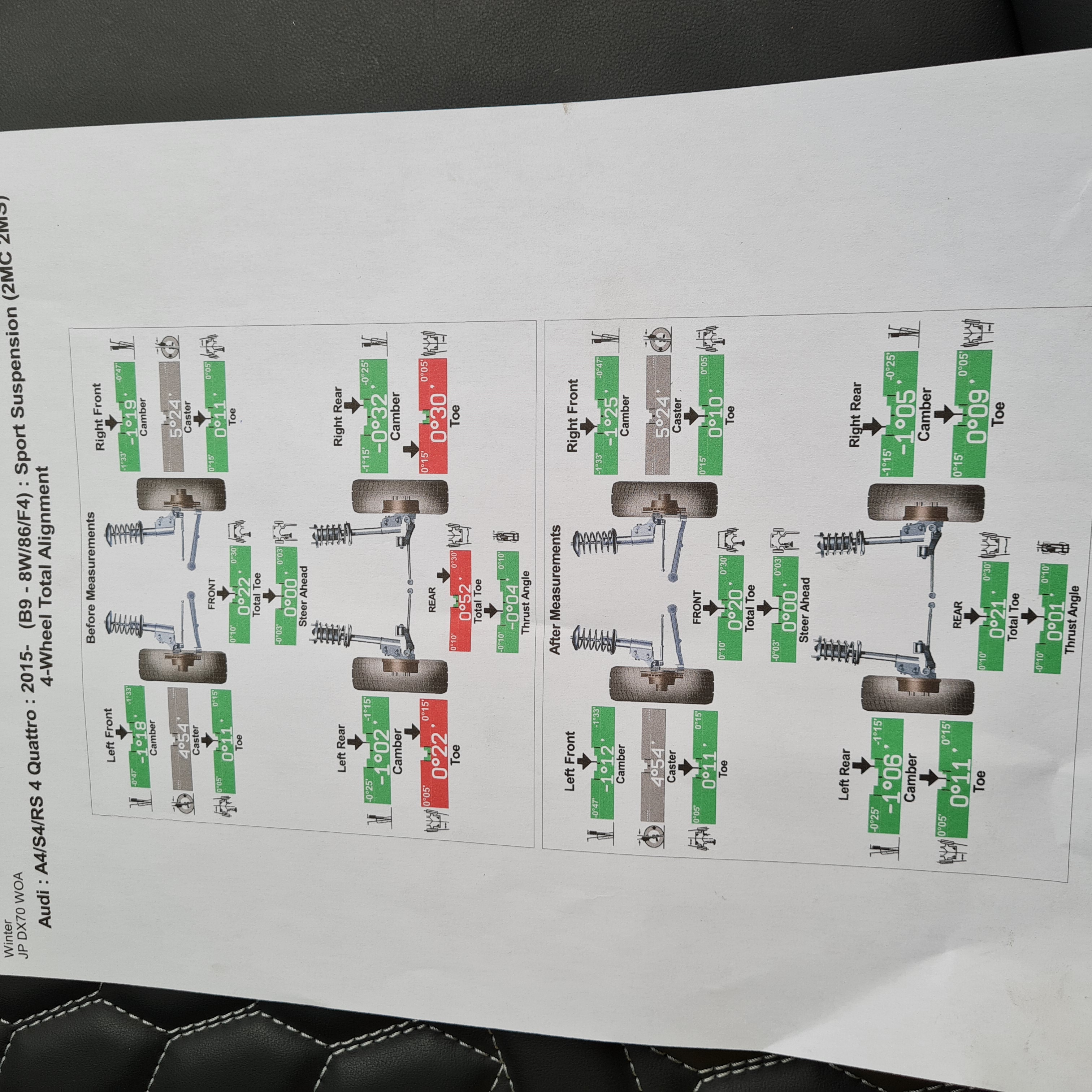 I've just had my alignment done on a 2020 RS4, so there must be some spec somewhere..... see the replacement tyres thread for my issues!
