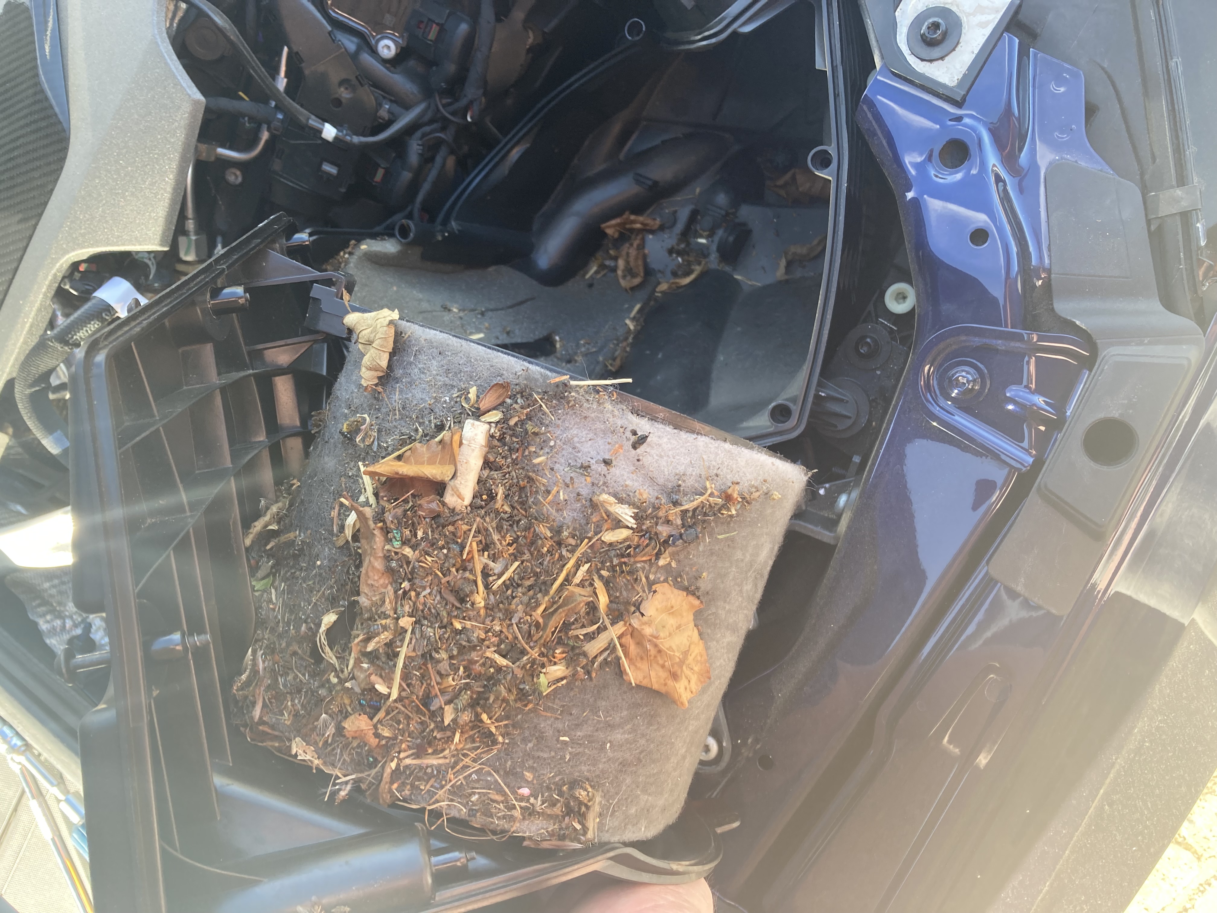 To ease access on the LHS of the engine I took the top off the air box and the amount of dirt, leaves and general crap in there was astounding.