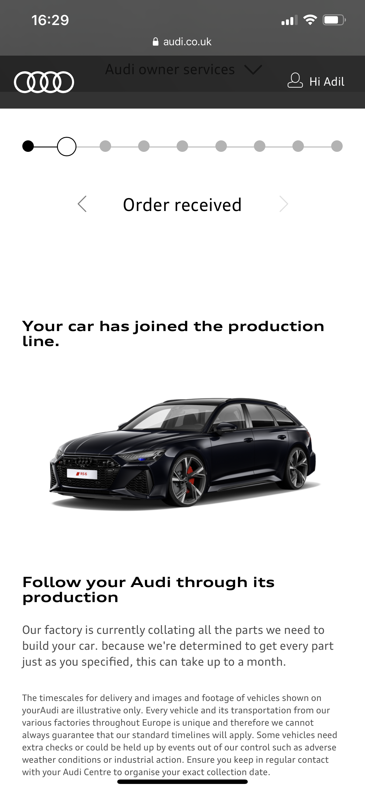 I placed my order with my local dealer 2nd week in November and locked in the spec as they had it on the internal system but not on the public configurator. I had my order number 2 days later. If they are giving you a build date/week then you will have a order number and you can check on myAudi.dilz87 wrote: ↑Wed Mar 04, 2020 11:24 pmc8rs6 wrote: ↑Wed Mar 04, 2020 11:16 pmDo you have an order number that you can check online and when the order was placed?dilz87 wrote: ↑Wed Mar 04, 2020 11:00 pmI have been told build week is wk16 then another 3/4 weeks before it arrives at the dealer so looking at mid-May at the earliest! I was told Feb/March when I placed deposit in August 2019 so not happy especially as I know quite a few people are starting to receive them now.