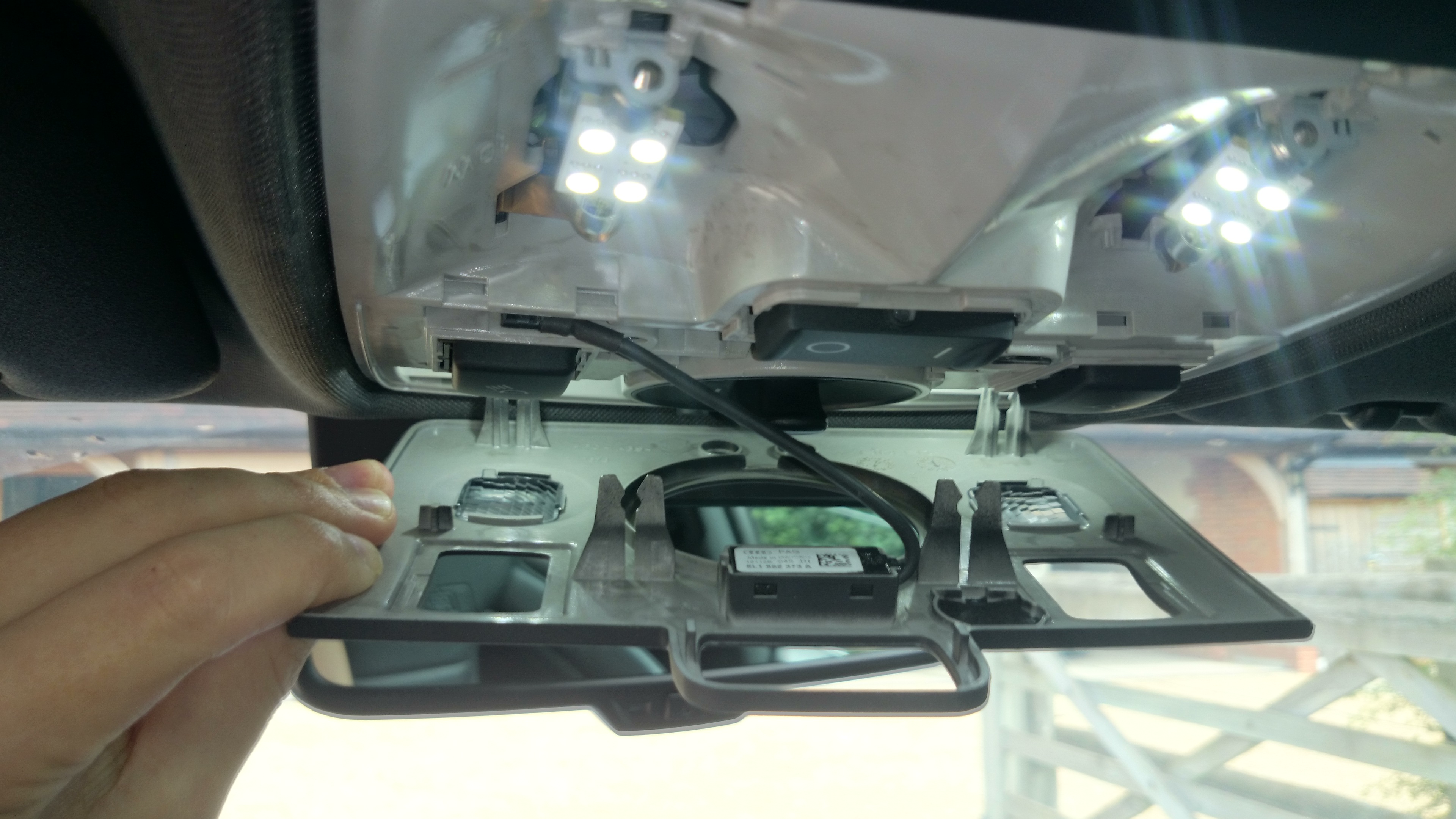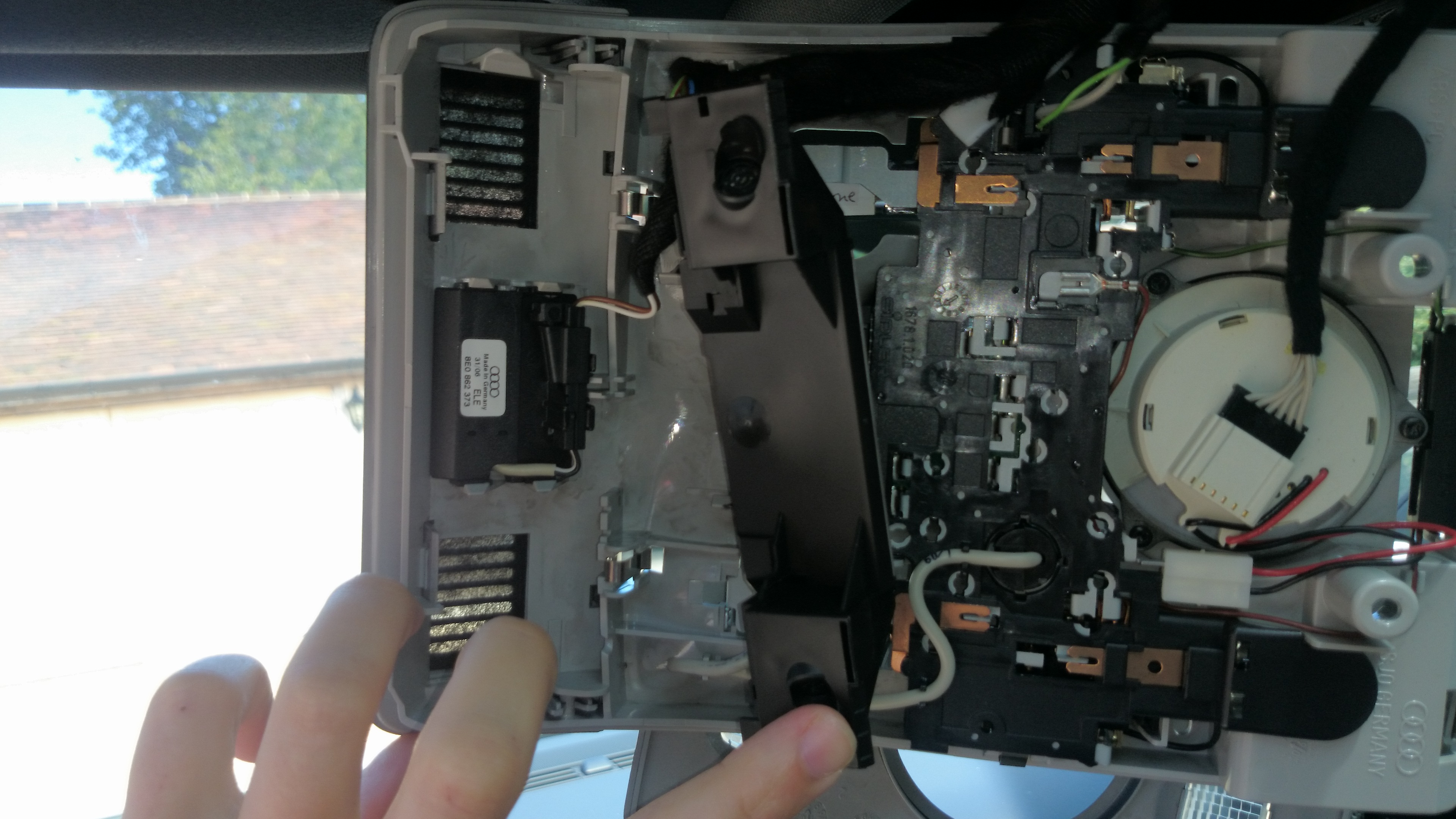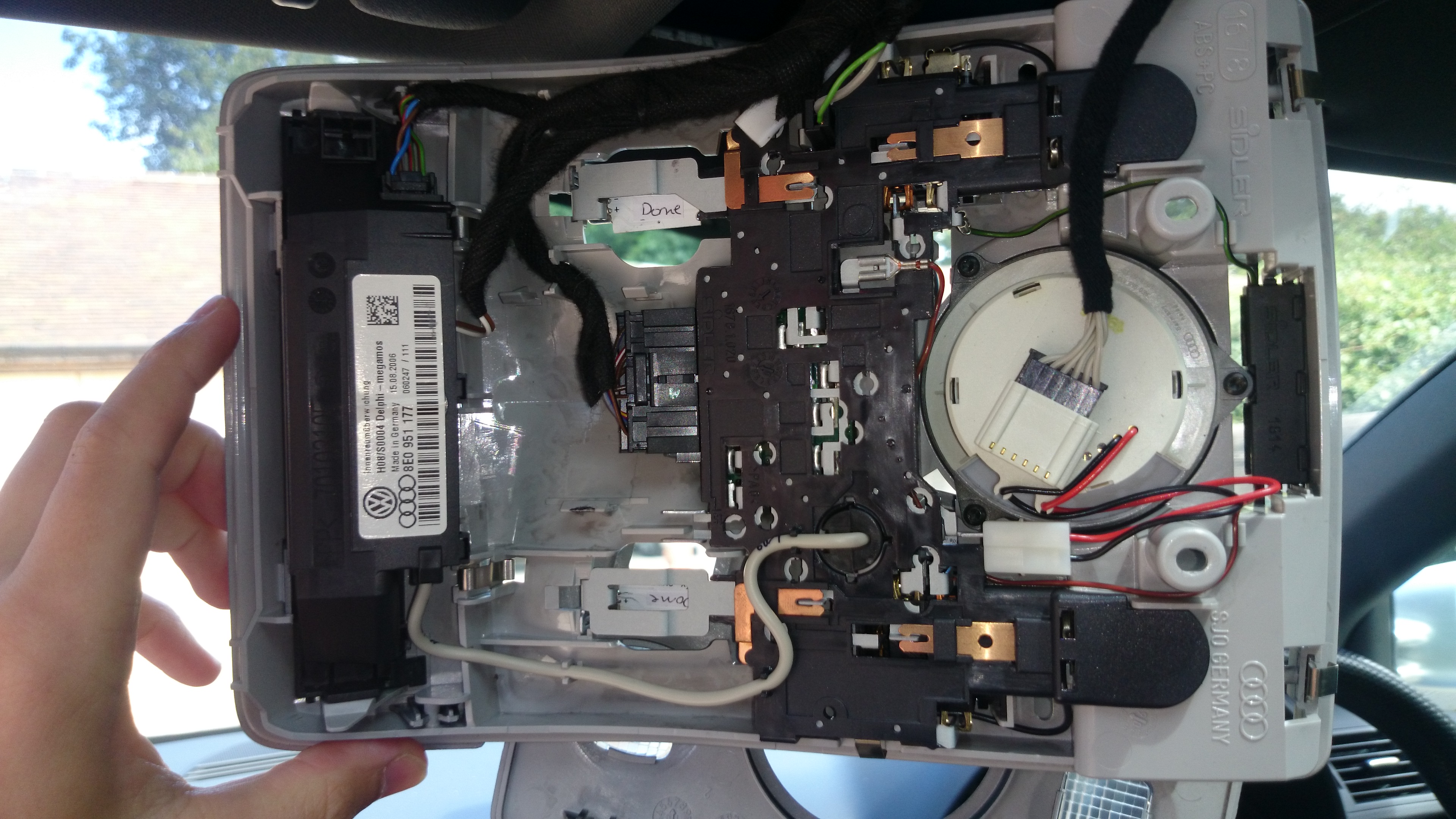 From reading what you & Dave have been discussing, it also sounds like the roof panel is missing the Bluetooth Microphone which is located on the other side of the panel you've pictured. It is betwixt the sunroof rotary controller and the main interior light switch, the mic will plug into a connector that has two wires 1) green 2) white/transparent.