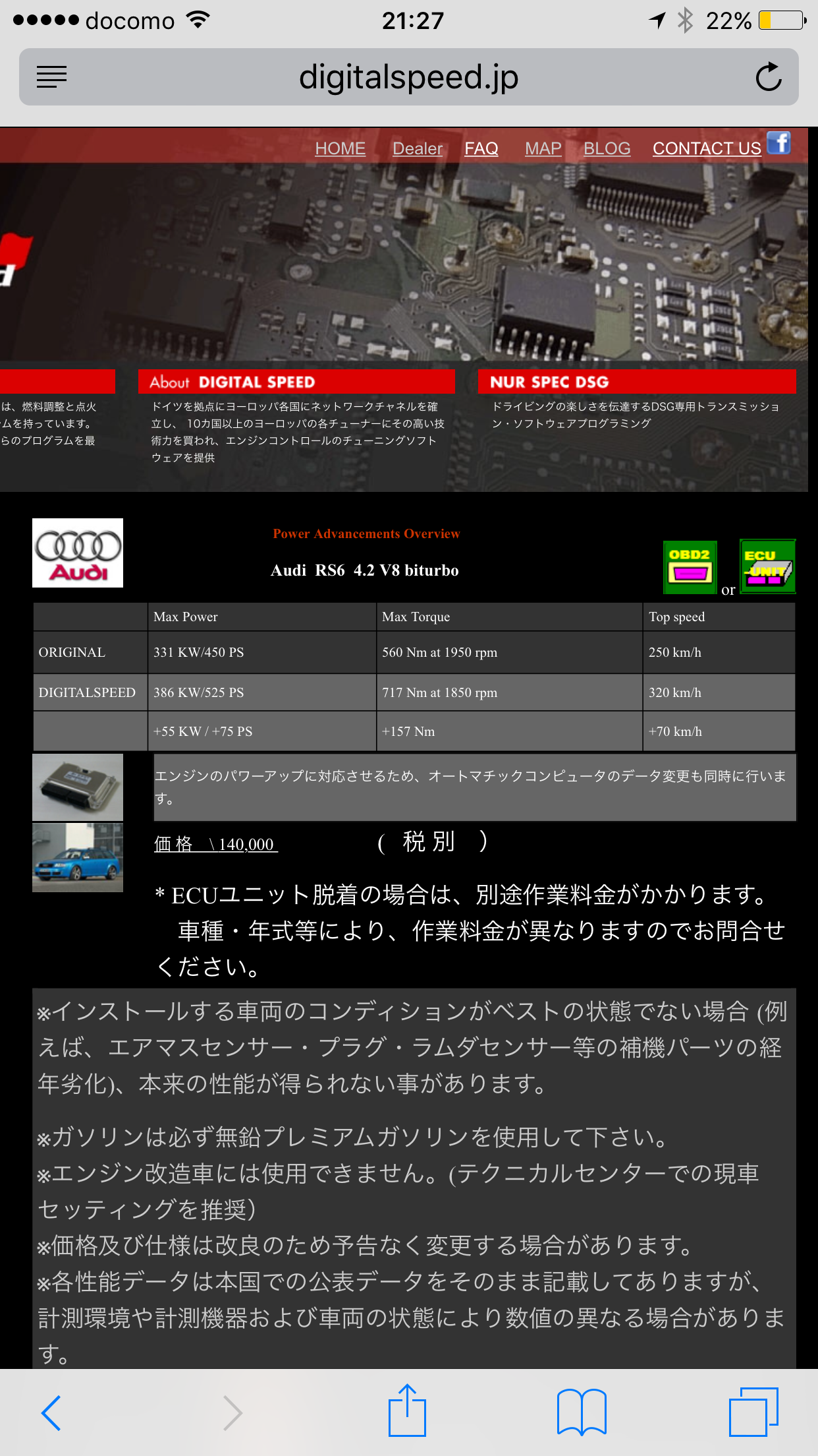 I bought my RS6 about a month ago, it's clean, low mileage etc etc.. On the rear and inside were 'Digital Speed' Stickers. I didn't know much about Digital speed at all but a quick search revealed they tune/map ECU's. I checked their website and they offer a 525hp re-map and transmission ECU flash.