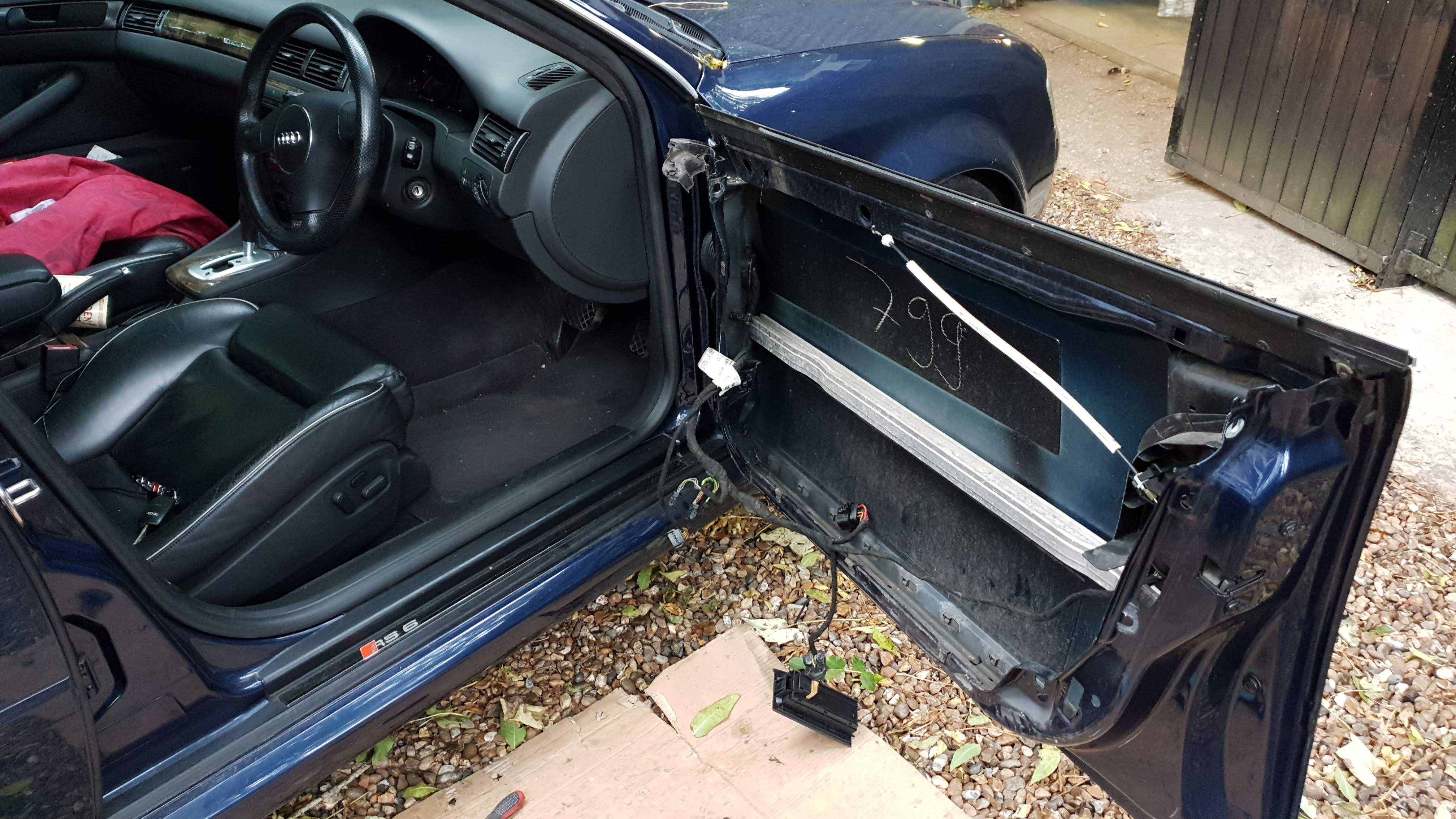 Thing is, with an S8, there is a LOT of stuff to clear out; trim, decorative panels, sound insulation, water barriers, wiring, all manner of bits inside the door!
