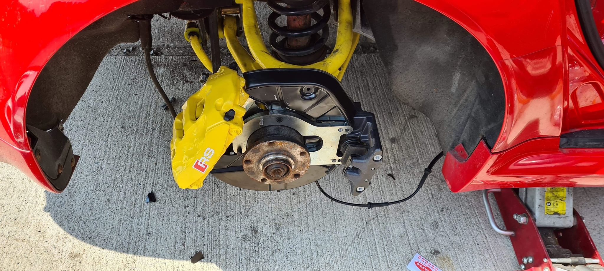 little update,as i just bought 1st house in London im not pushing my mechanic to rush with rs6 as i'll get big bill to pay,and house need 80K to be liveable,but he do some work in spare time so i thought i would share some pic.Box is bolted with engone,starter motor working as it should,i sent some calipers to powder coaters,got my adapters ready,in the end i went for 380mm front with porsche panamera 6pots and 345 rear with 4pot off panamera and r8 hand brake.