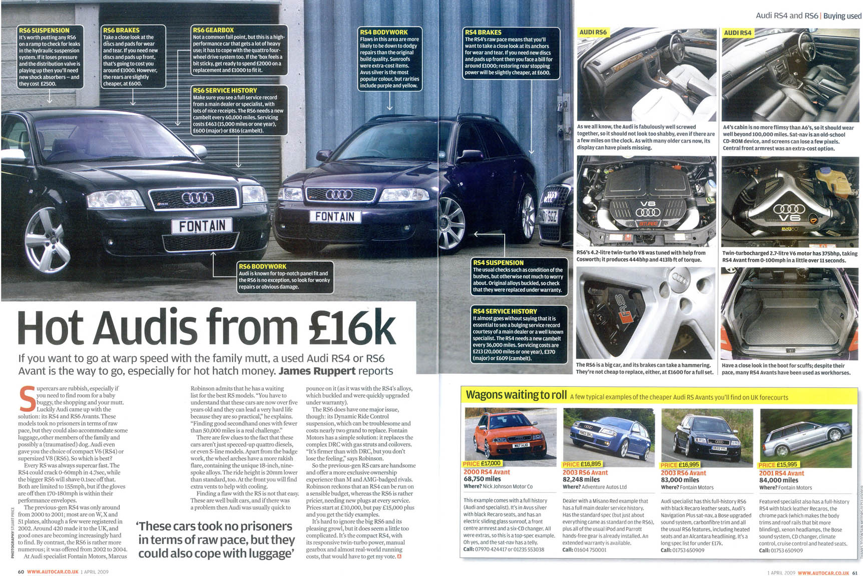 This week Autocar weekly - Wed April 1st 2009 page 60 to 61 - has a brief 2 page buyers guide for the RS6 (C5) and RS4 (B5).