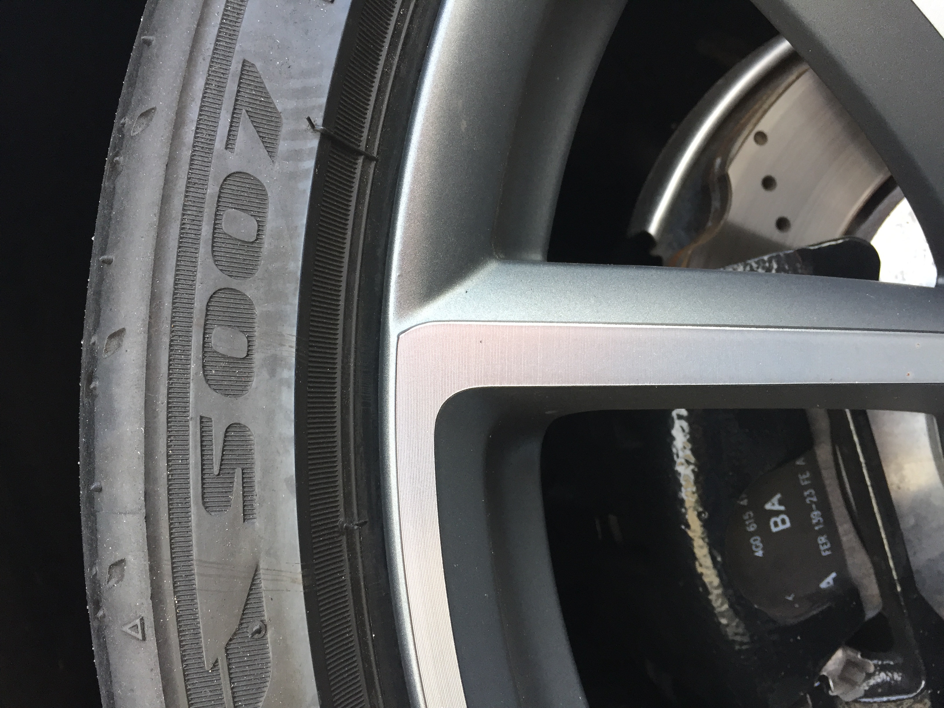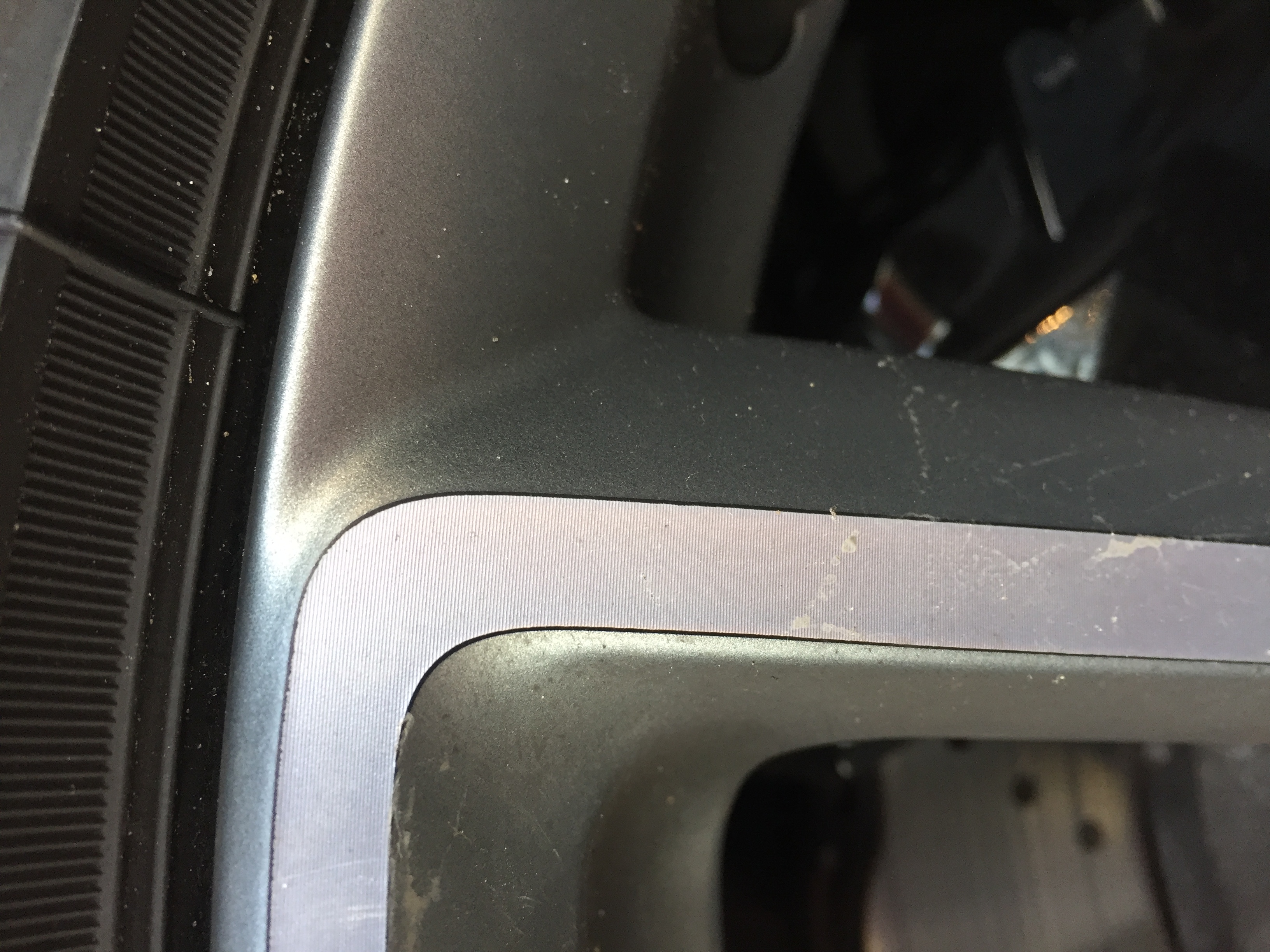 When cleaning the refurbed wheel I noticed that it was impossible to clean. I tried using iron fallout remover as well as a citrus cleaner and neither shifted the marks. Further to my annoyance I've then noticed that the shadow lines were skimmed off my the refurb place. Something I didn't notice from a foot away.