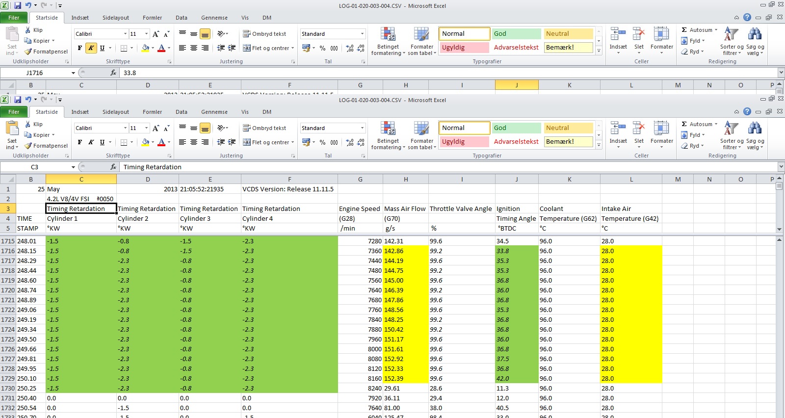 I will also do some more pulls with these 12 log values - I think we need Timing, <beep> and lamda (load and throttle also) to be able to compare