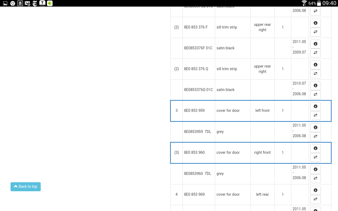 Can anyone give me the part # for the front passenger side door blade?