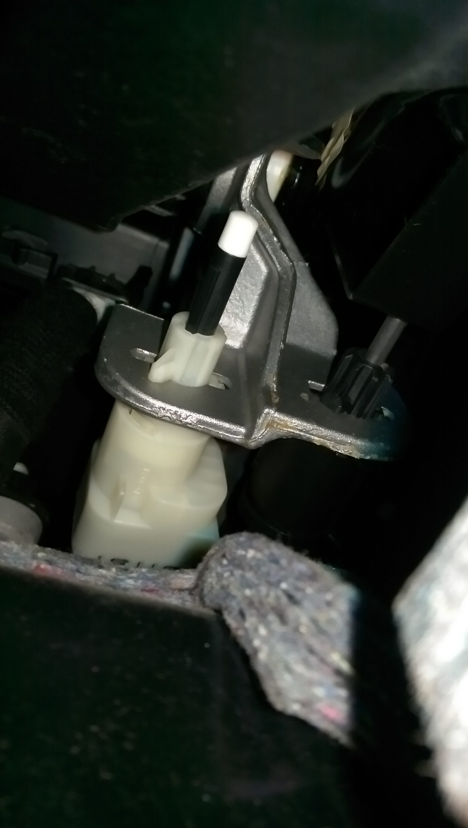 The lower switch has a blue casing and allows the car to start without depressing the clutch. Apparently, it’s also the switch that causes the revs problems, when changing gear. (Didn’t have this problem, so I can’t be sure)