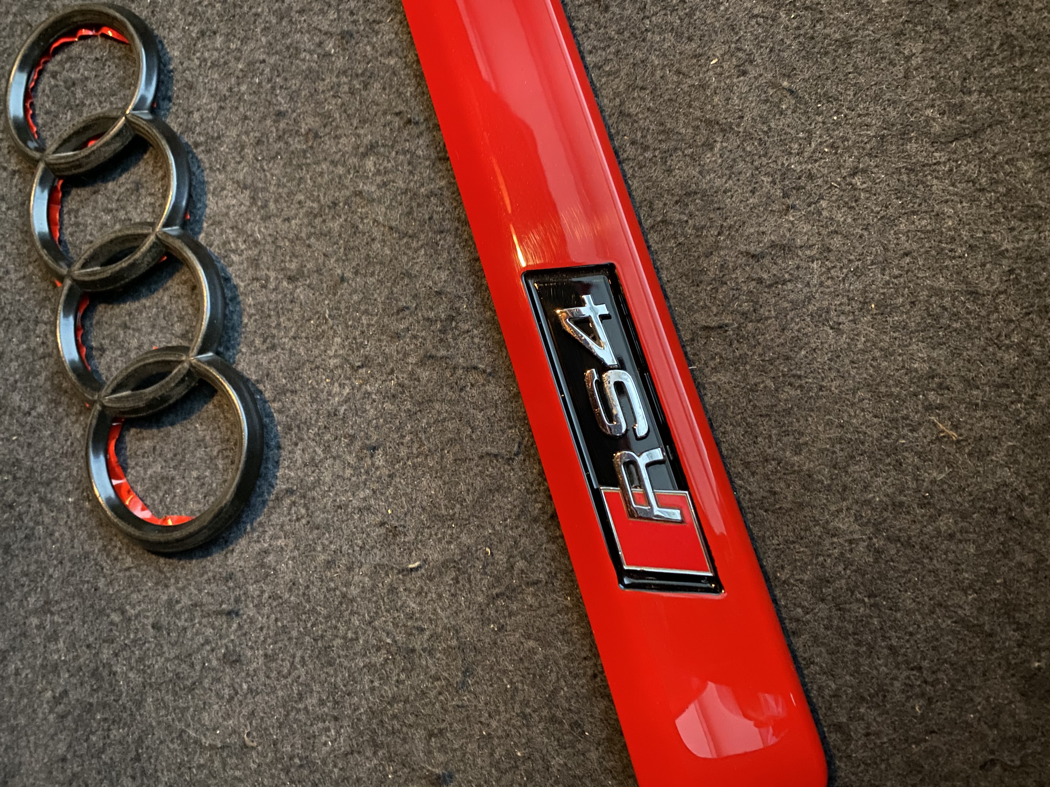 They will appear as rs4 side emblem. RS4 logo rub strips , etc. Don't know if there are good replicas out there