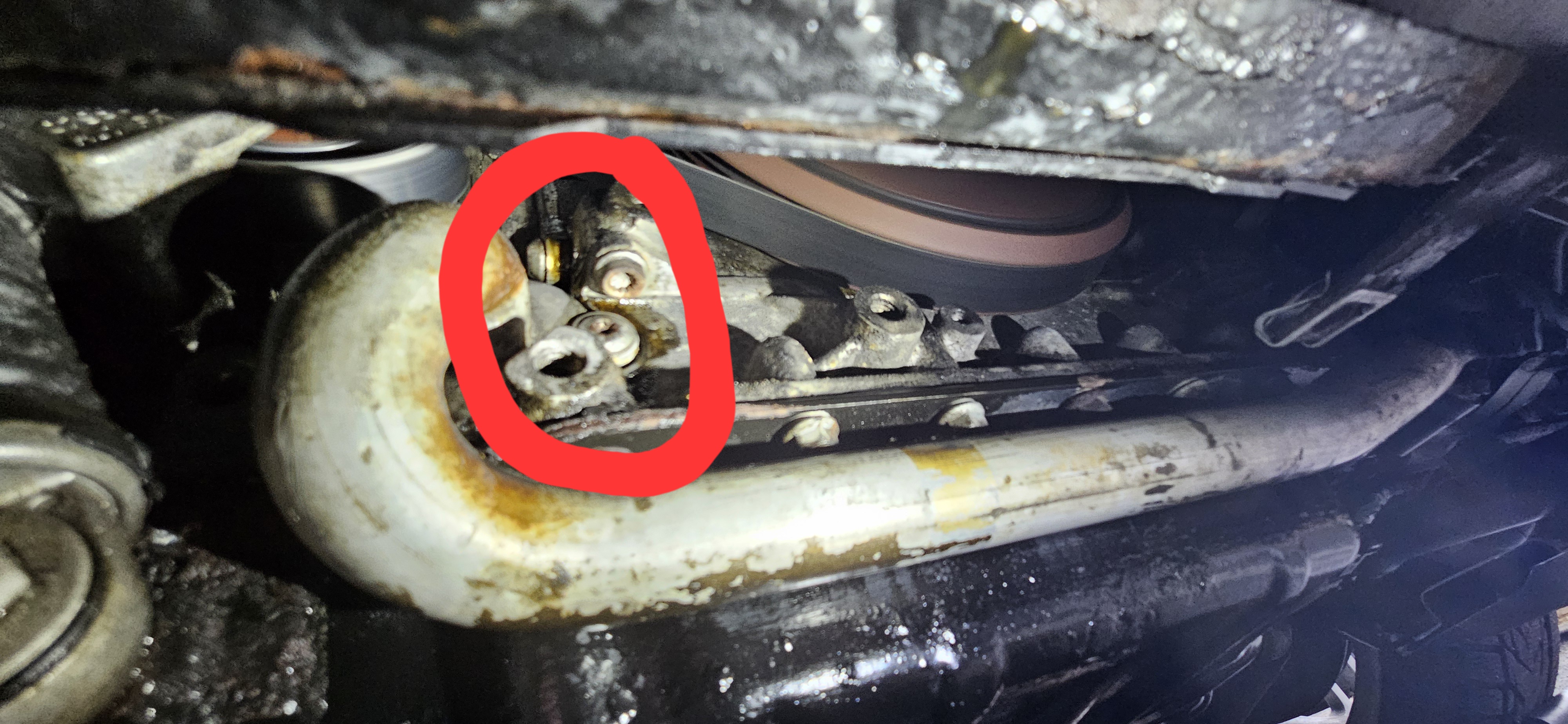 My car seems to have developed a slight oil leak. After taking the undertray off it seems to be coming from the front right (drivers side) of the engine. It's looks like it weeping from around a bolt near the aux belt. (I know oil can travel quite far but after a thorough clean, this seeems to be where it's originating).