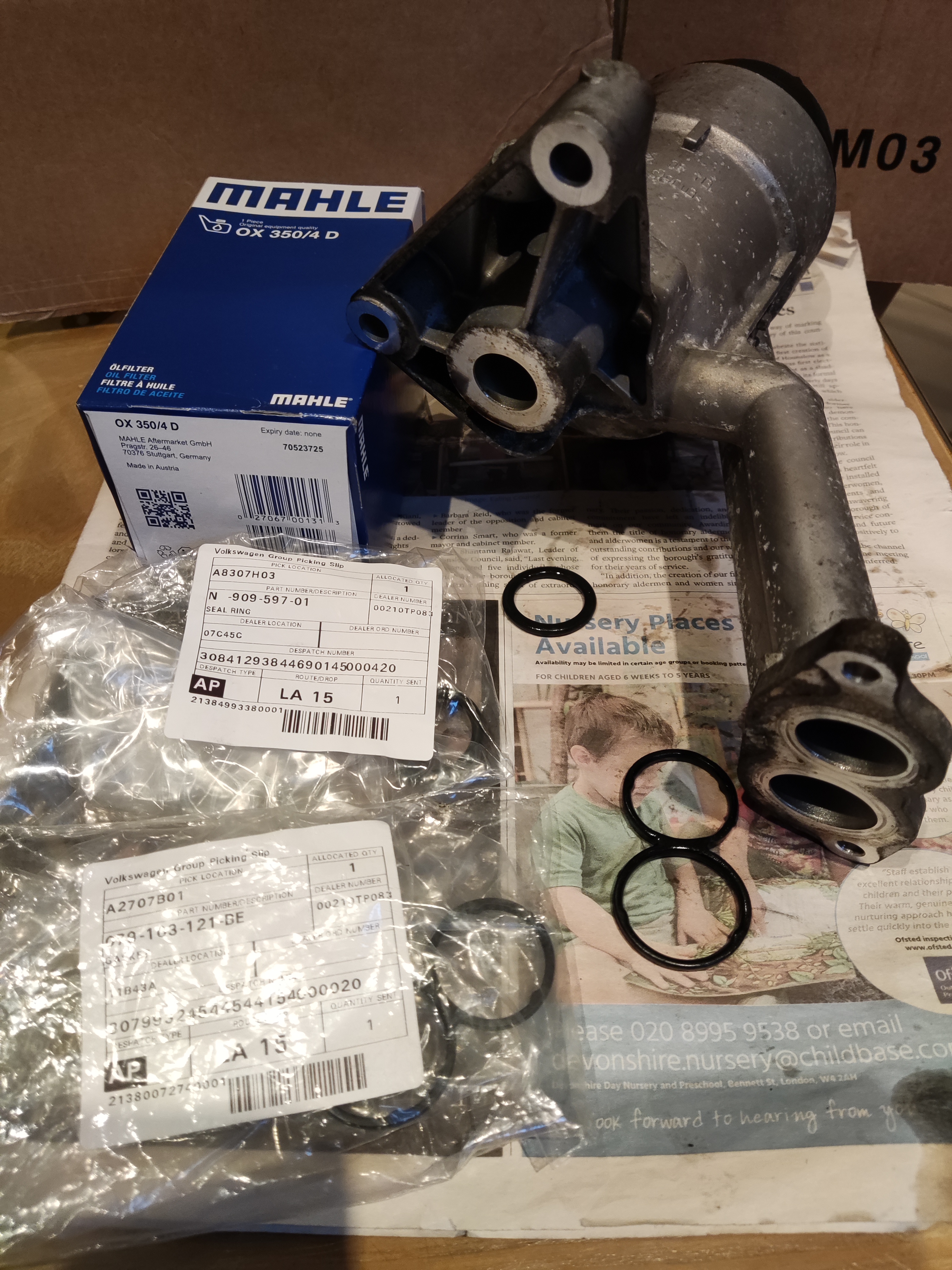 Of the two Oil Filter housing seals, the double 'O' ring / 8 figure seal definitely feels quite hard to the touch.. and is likely the seal that eventually fails.. leading to the engine oil seeping into the valley.
