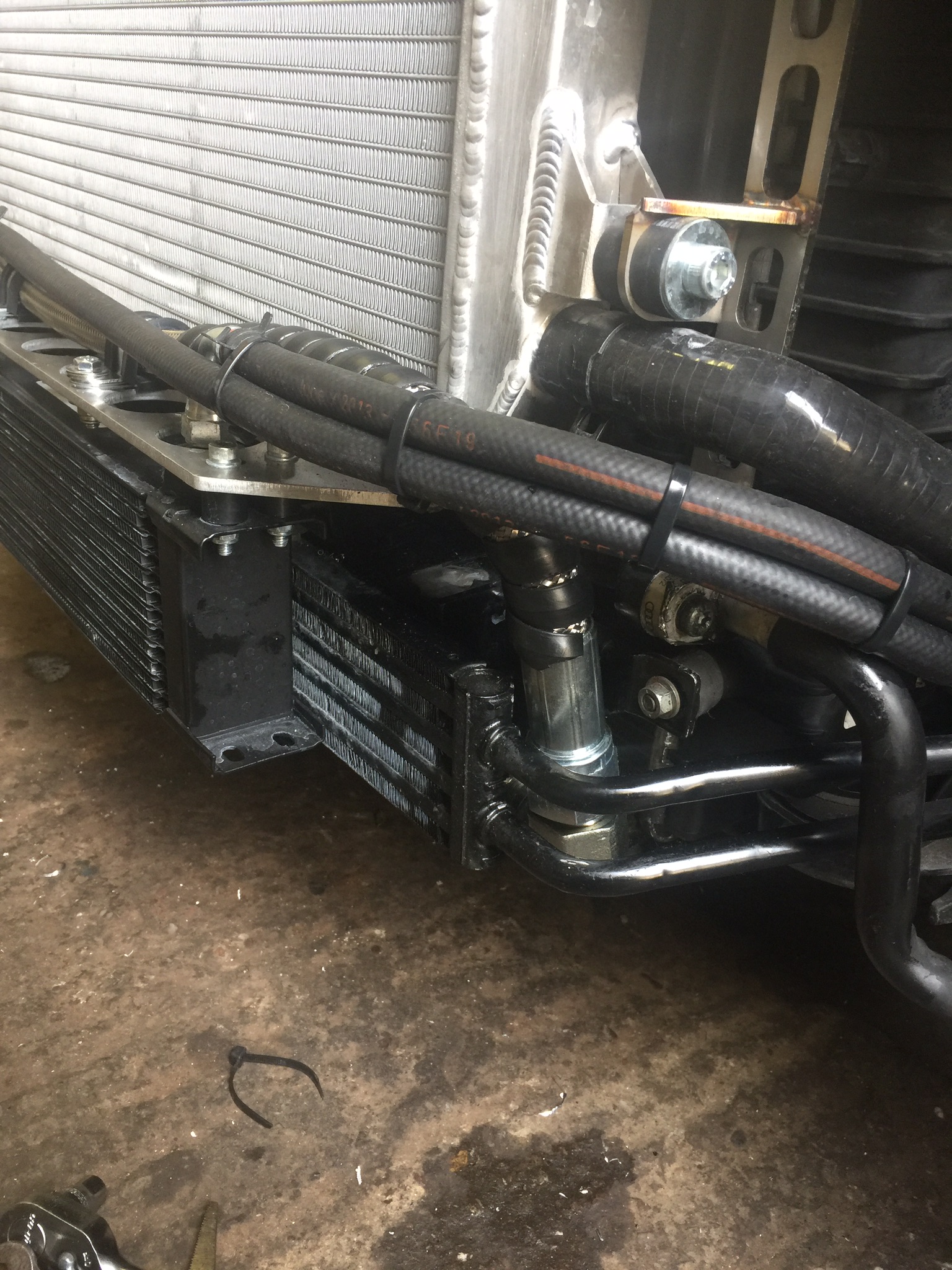Might be a pain to sort now but i put back to back steel fittings on to the oil cooler with my own made pipes,
