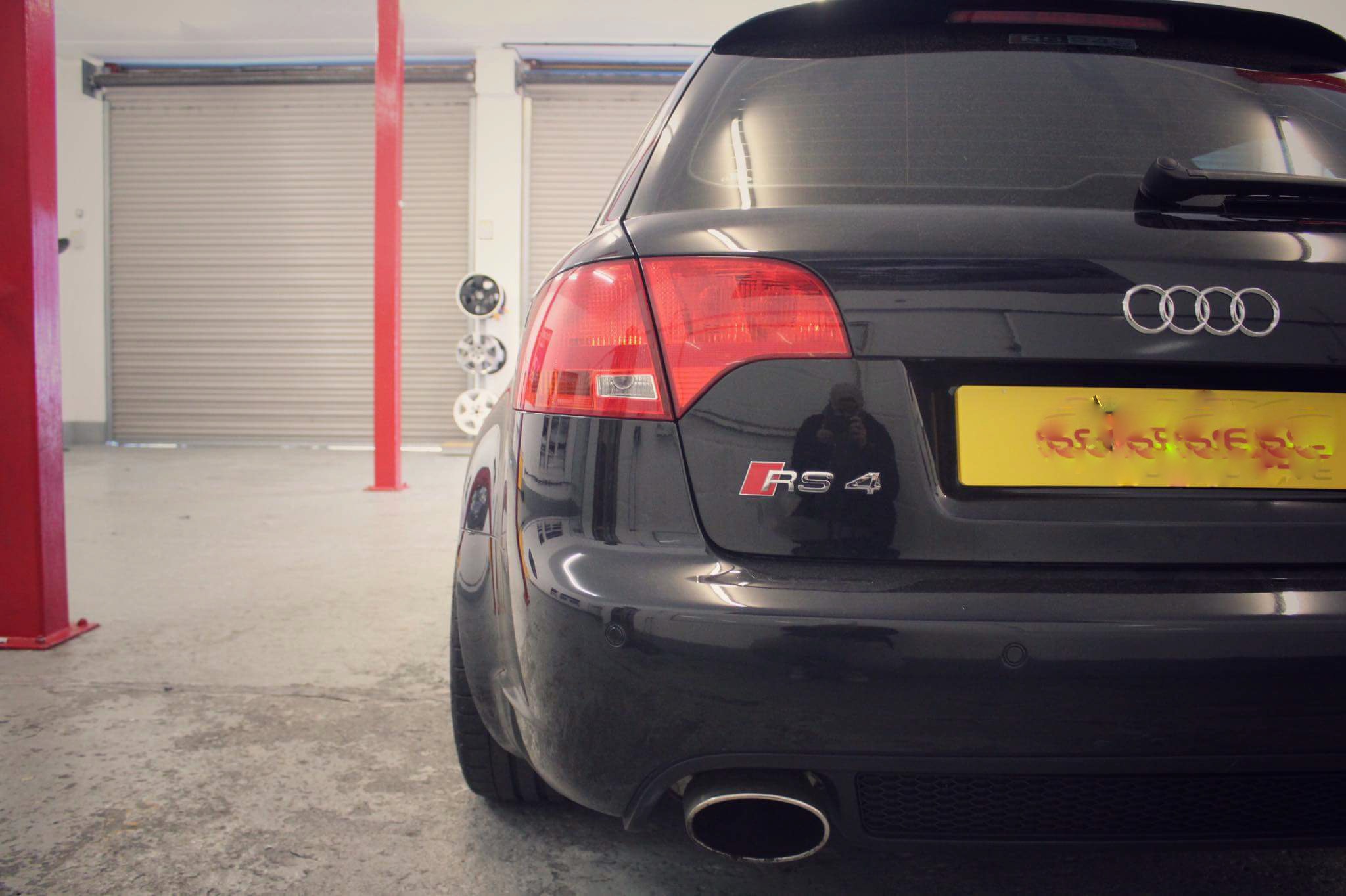 Rs4 b7 In avus silver with b14 Bilstein coilovers, centre resonator delete with x pipe and piggie cats gutted
