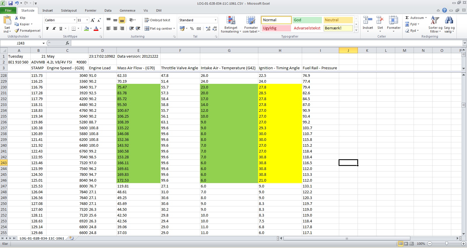 I will also do some more pulls with these 12 log values - I think we need Timing, <beep> and lamda (load and throttle also) to be able to compare