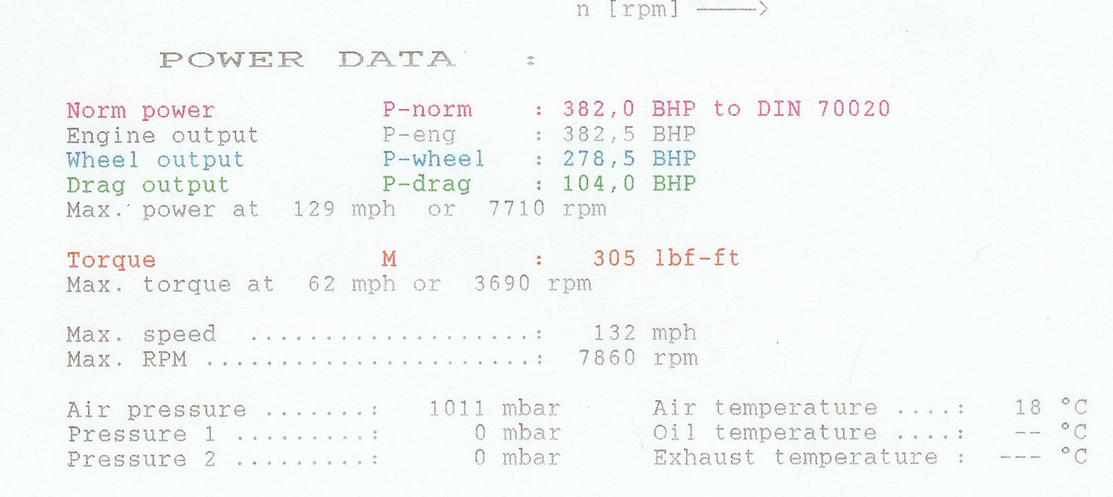 When mine was done 3rd and 4th gear runs were done and on diferent modes, in reality I think you could extrapolate whatever figures you like from a r/r with different gearing, sghoot modes and of course the holy grail of extrapolation, transmission loss.