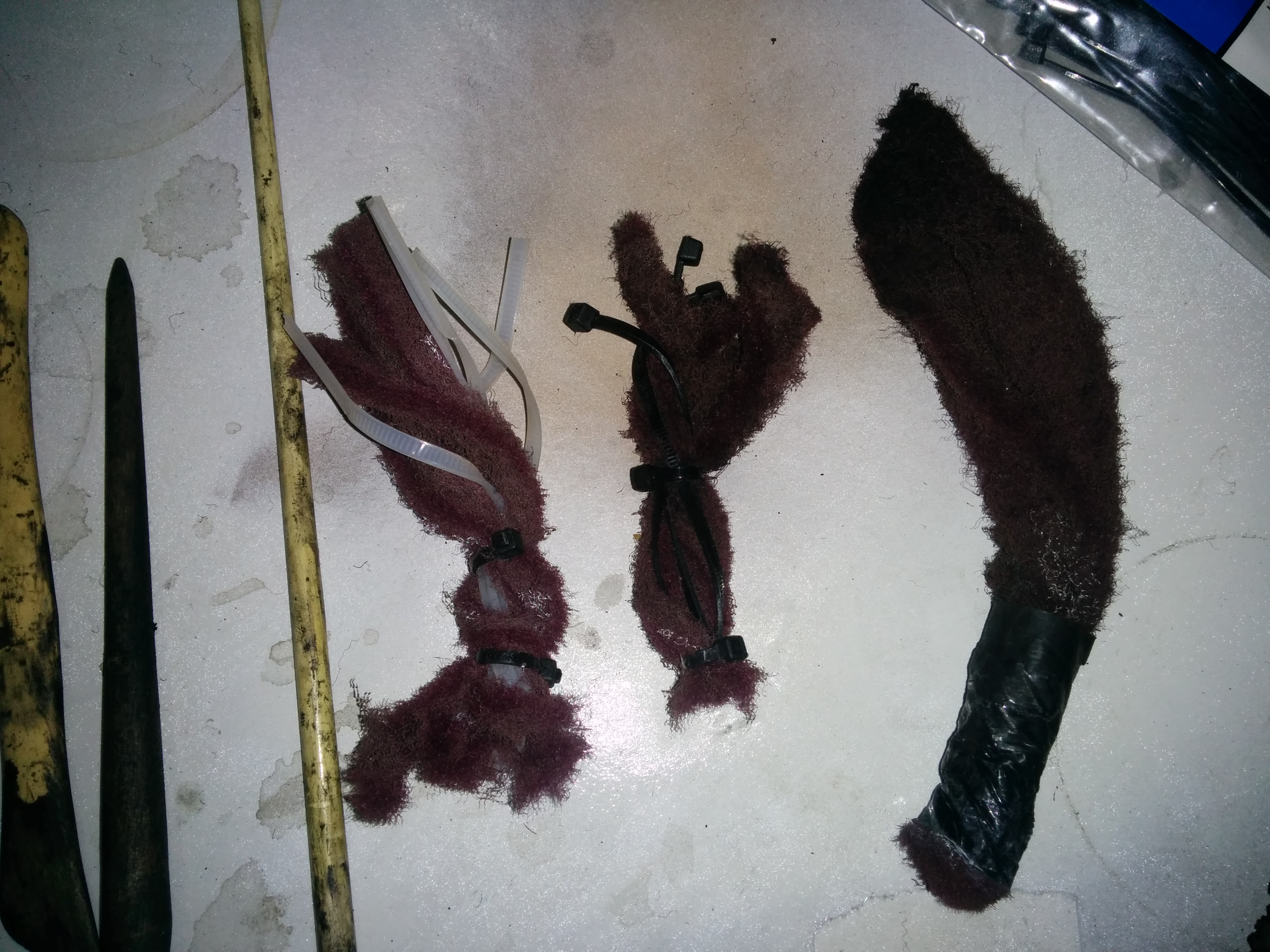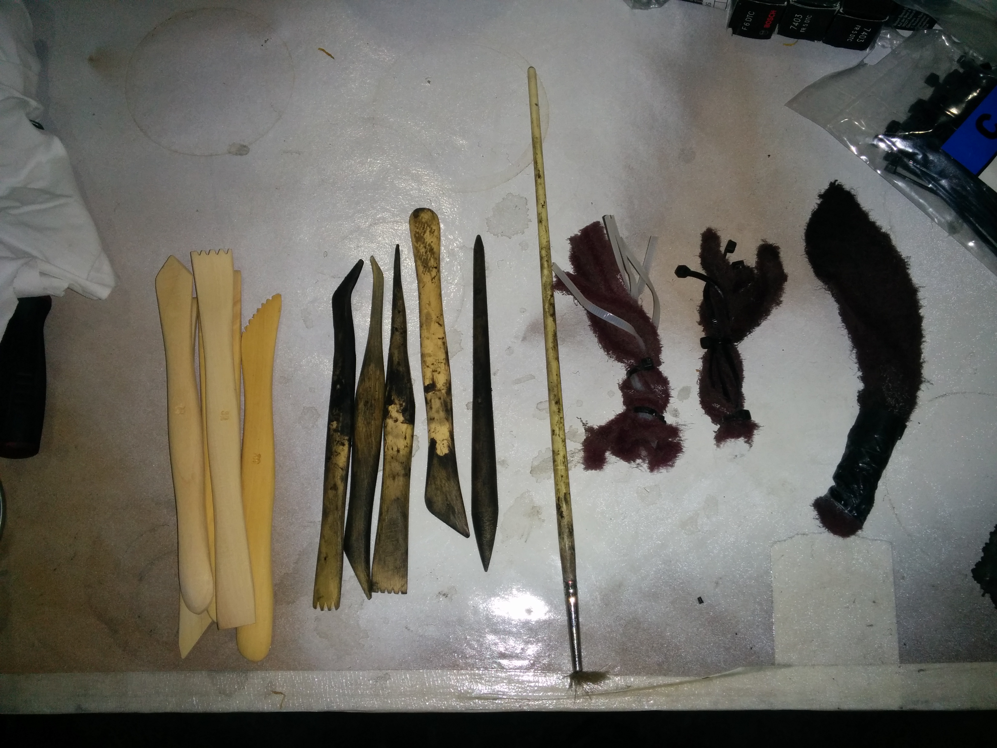 carbon clean action!, i filled a couple of ports with carb cleaner let it soak for 30 min then wicked it out with cloth and set about it with the wooden picks. i did this twice for each port. i ground down a couple of the wooden picks to make them a more useful shape. i also experimented with some cable ties/red scotch combo in a drill. i imagine this would work good for removing the bulk of heavy build up but as i only had a light ish coating these were not that effective for me, i ended up cutting some small strips of scotch and dragged and scrubbed them round the ports manually with the wooden picks while they were still full of carb cleaner.