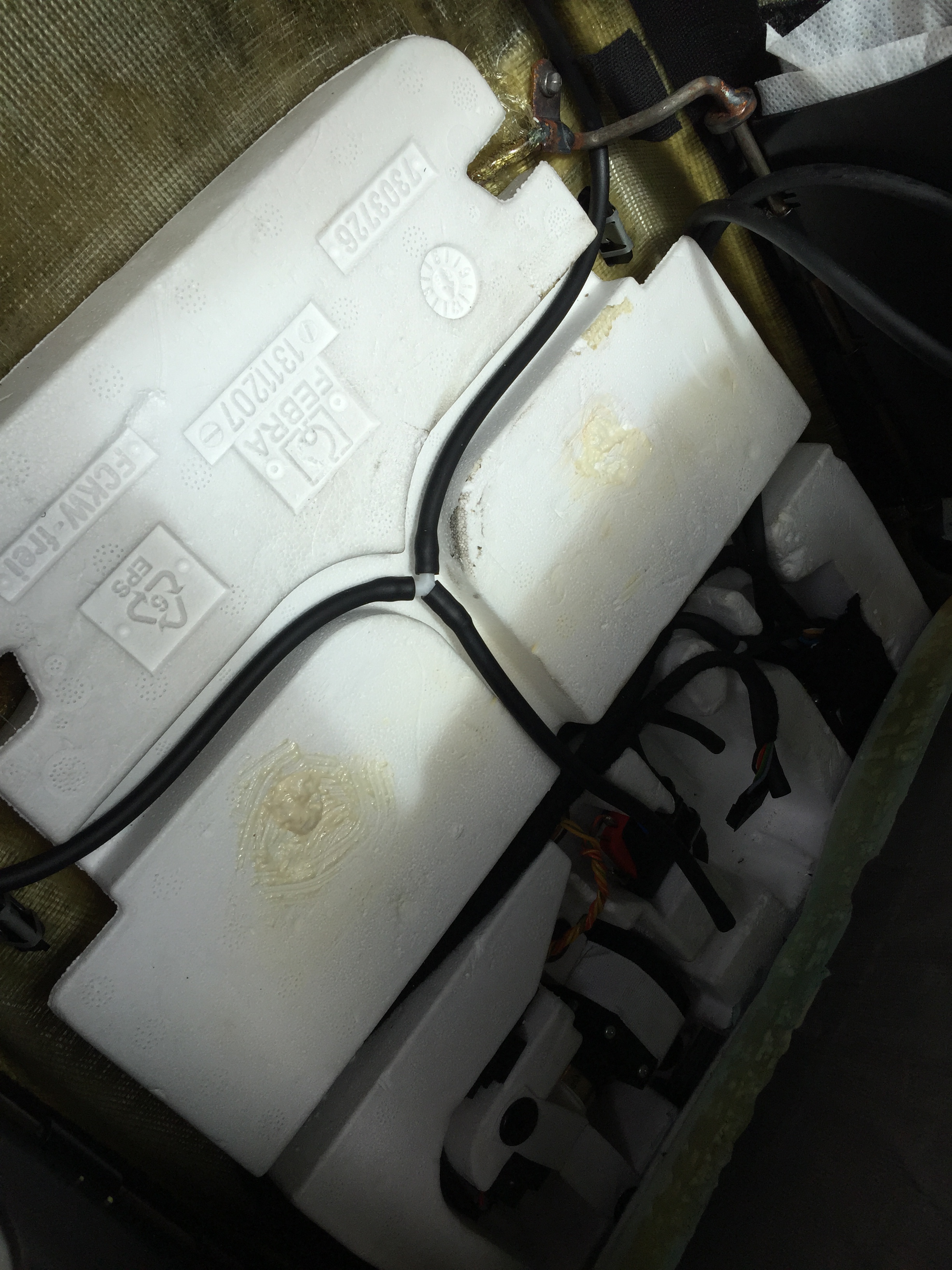 To fix, fill the cavity behind the crack and around the base of the brass insert with a 2-part Araldite or a similar hard setting glue. (in this pic i have the valve apart, this is not necessary) What i found interesting is that i had one leaking valve and one good. The leaking valve is stamped 2005 manufacture. The good valve is 2009. Maybe they improved it? When i re-assembled it, i noticed the lumbar pad plastic retaining screws that go into the white foam had worm the hole in the foam out, allowing the lumbar pad to slip down.
