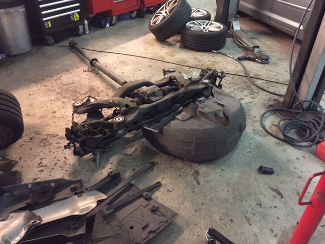 It's a big job. The rear axle, prop shaft, exhaust and fuel tank need to be removed. I decided I wanted to stick with DRC so went ahead.