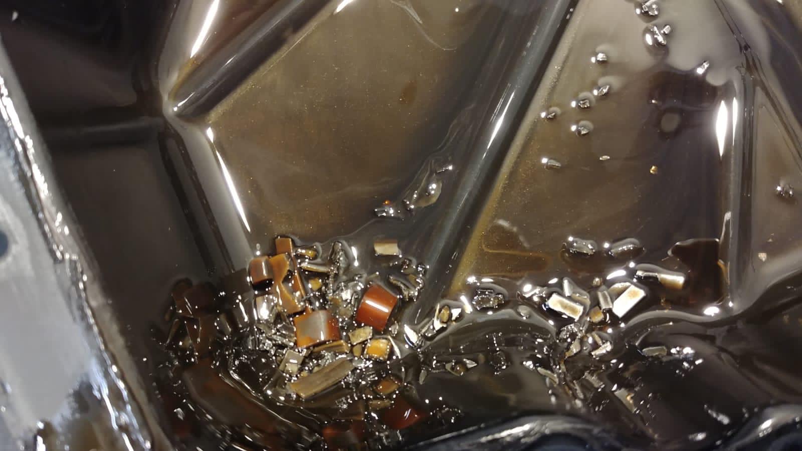 The vehicle showed no signs of failure, no knocking, bad distribution sound at start-up, no loss of power (there was 426 Ps on the engine brake). Shortly after the oil change, after about 500km, the oil was very dark, so I took off the oil pan and found this.