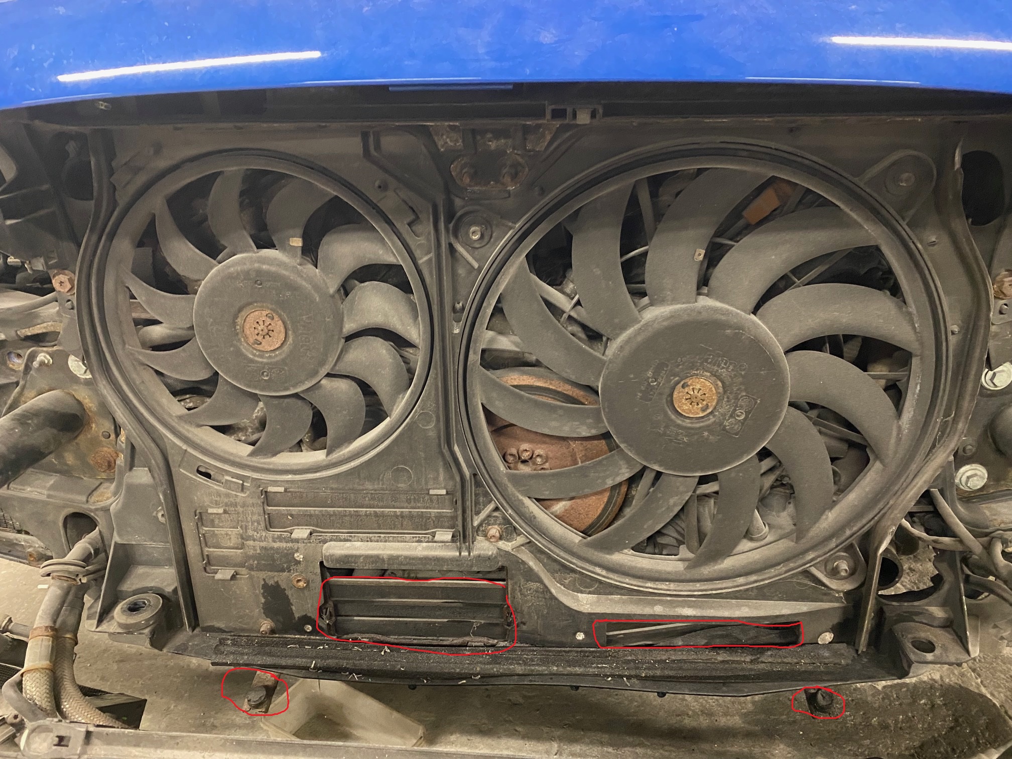 For the oil cooler there is a bracket and the bottom of the slam panel which supports the oil cooler however mine is rotten and I am trying to get a replacement.