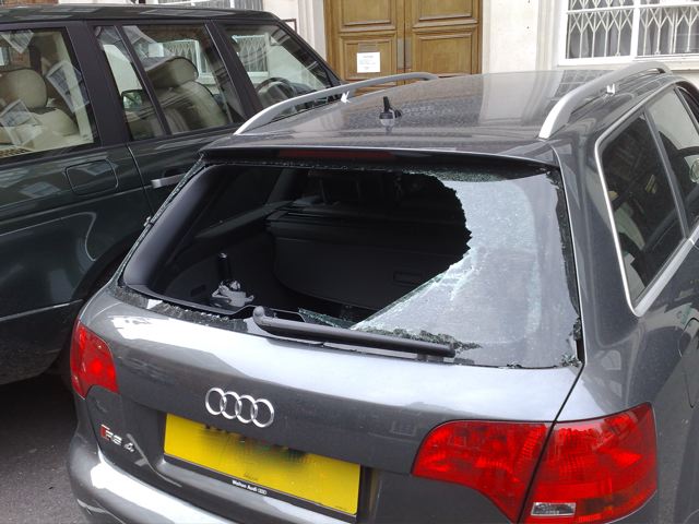 Mayfair, central London! and the second time literally on the corner of Mayfair Police station... So pissed off. There is still glass everwhere from the first break-in.